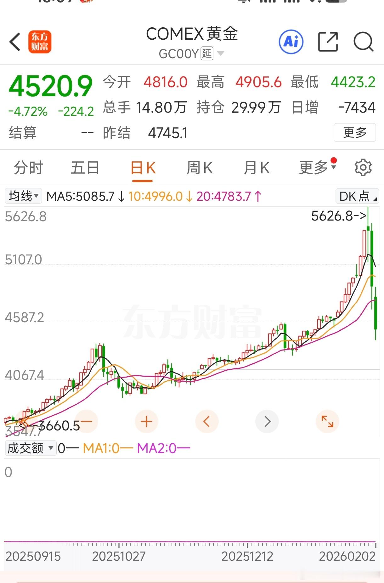 黄金白银再次暴跌现货黄金下破4500美元这断头台太牛了,直接闷杀,不给出来的机会早晨这位粉丝牛逼!真的破4500啦