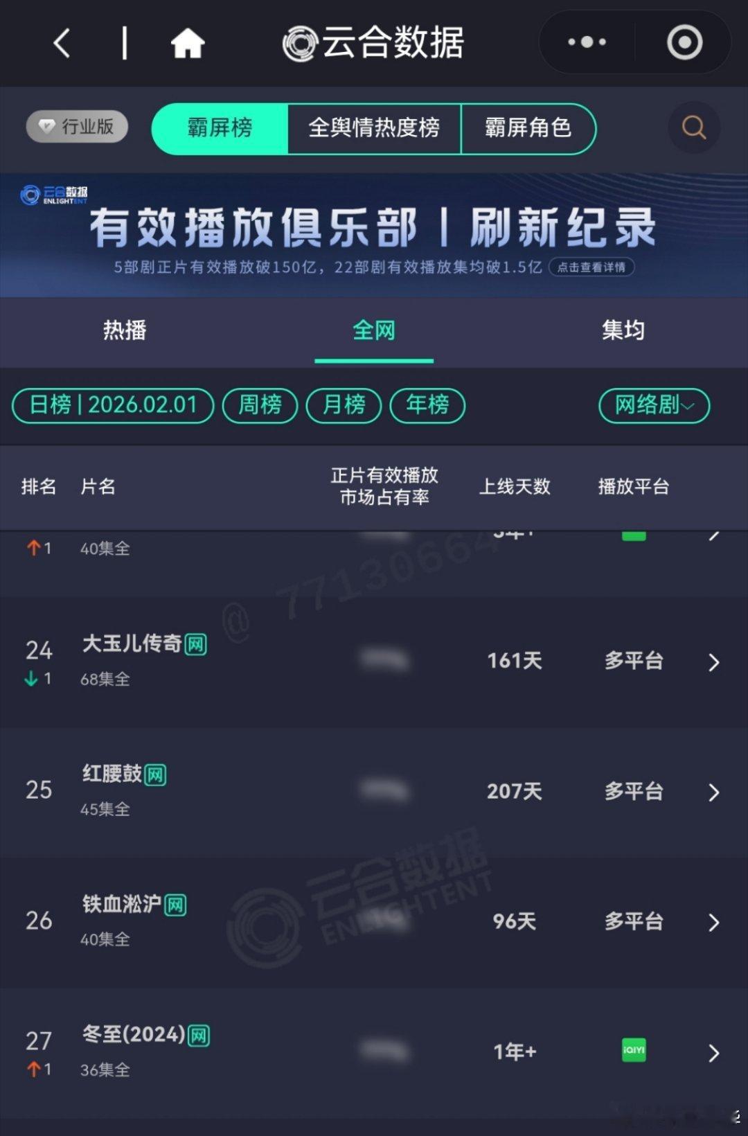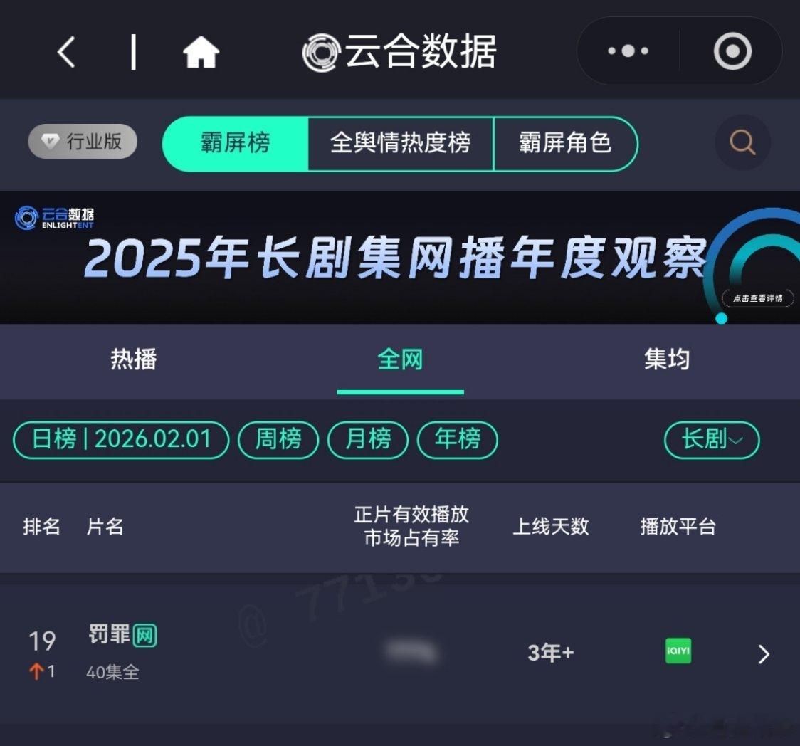 2月1日,罚罪2VIP更新结束第16天,又一个新剧超点了,今天排第7,热播期预测还有13天,罚罪,云合第19(又升了),《冬至》云合网络剧27(也升了)黄景瑜罚罪2 黄景瑜罚罪2秦枫