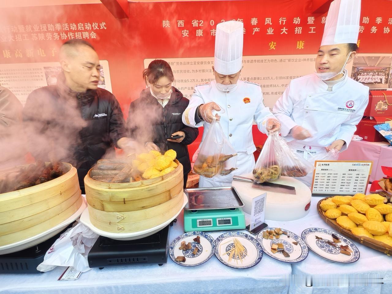 今日安康金州广场春风行动,企业招聘,打工人云集。没想到好多饭店也来了,乐得逛会的人吃了个肚儿圆。 就在会场的西南方向,一溜烟儿过去的集市棚子里,摆了好多饭店的摊位。金州美食、石泉啵啵鱼、镇坪药膳等等都摆上了摊子。关键是,不仅能看,而且还能品尝。 豆腐干腊肉香肠,一路尝过去,还是觉得镇坪药膳的当归乌鸡汤喝起来带劲。汤喝着热乎乎的,一股鸡汤的香味,关键是还有益于人体的健康,是一道养生汤,味道也很正,喝起来很开胃。 你觉得现在安康的美食界,谁是杠把子?