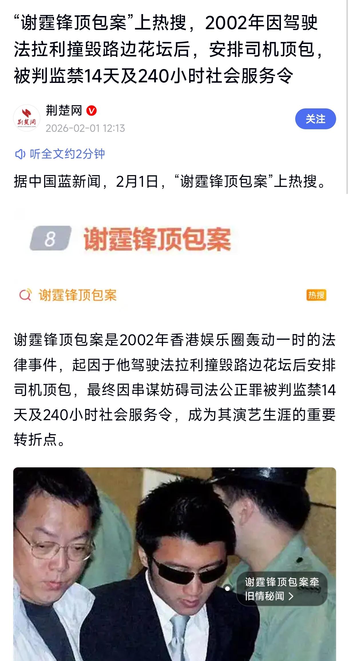 2002年,谢霆锋因肇事逃逸和让司机顶包。被拘留14天,判处社会服务240小时。 2026年,金晨肇事逃逸及找人顶包被发现后,道歉了事。 质疑她的人被批判成揪着不放,网上铺天盖地都是顶包是小事的言论。 这到底是时代的退步,还是道德的沦丧?