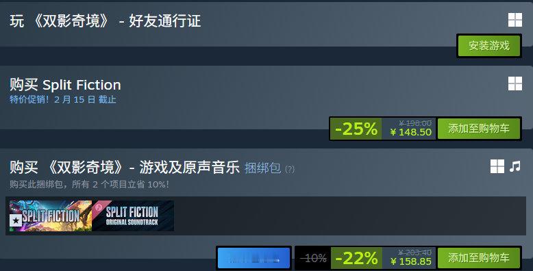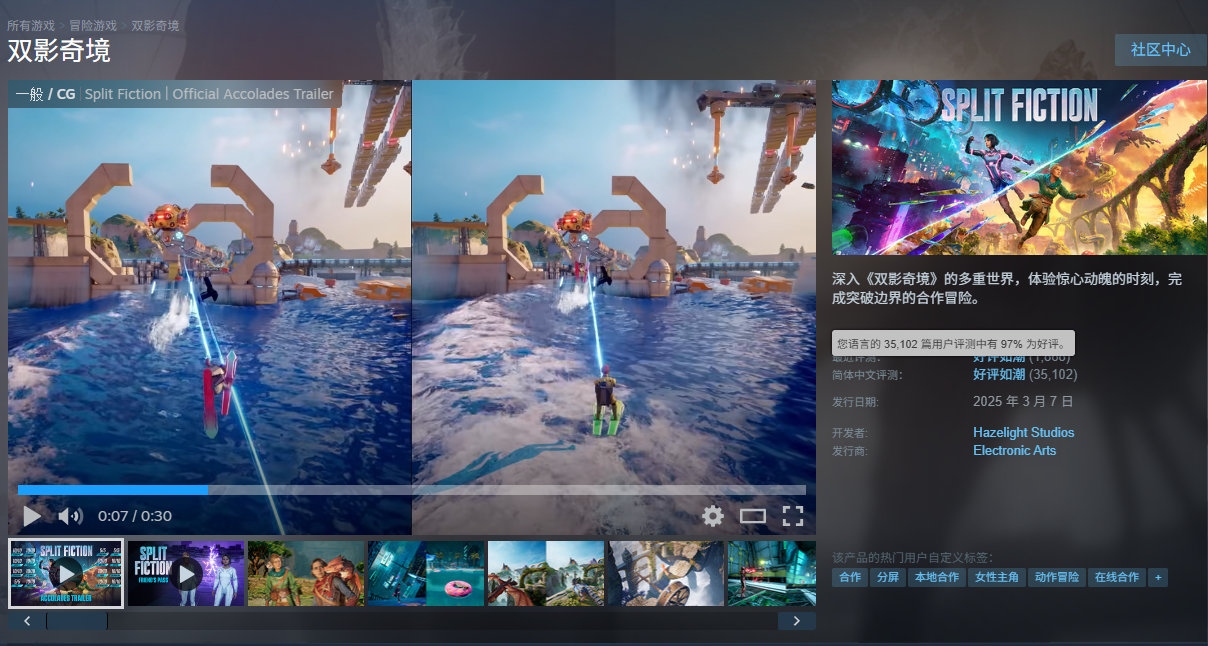 双人合作冒险游戏《双影奇境》目前在Steam上享平史低优惠,折后148.5元,2月15日截止,支持中文,国区好评率为97%,收录35102篇玩家评测。