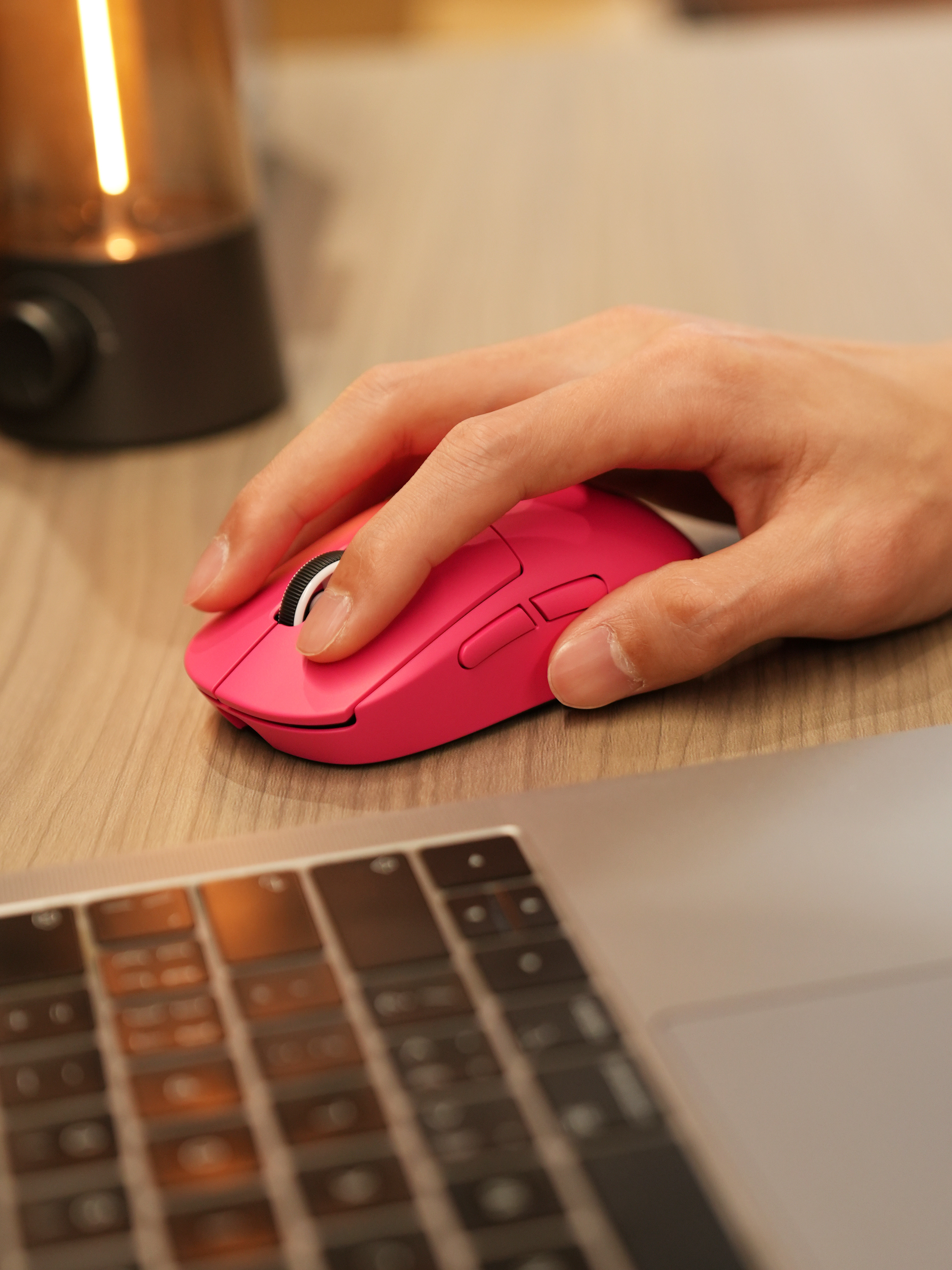 GPW4 小狗带来三款配色,我上手的粉色可爱又亮眼,摆桌面吸睛度拉满。相比之前的模具,GPW4小狗缩小到了原来95% 尺寸,三围紧凑贴合小手,抓握、趴握都不顶掌心、不挤手,跟手感直接拉满。51g的重量搭配0.7mm的外壳,长时间拉枪甩狙手腕不酸,它也是 GPW 家族最轻的竞技款。