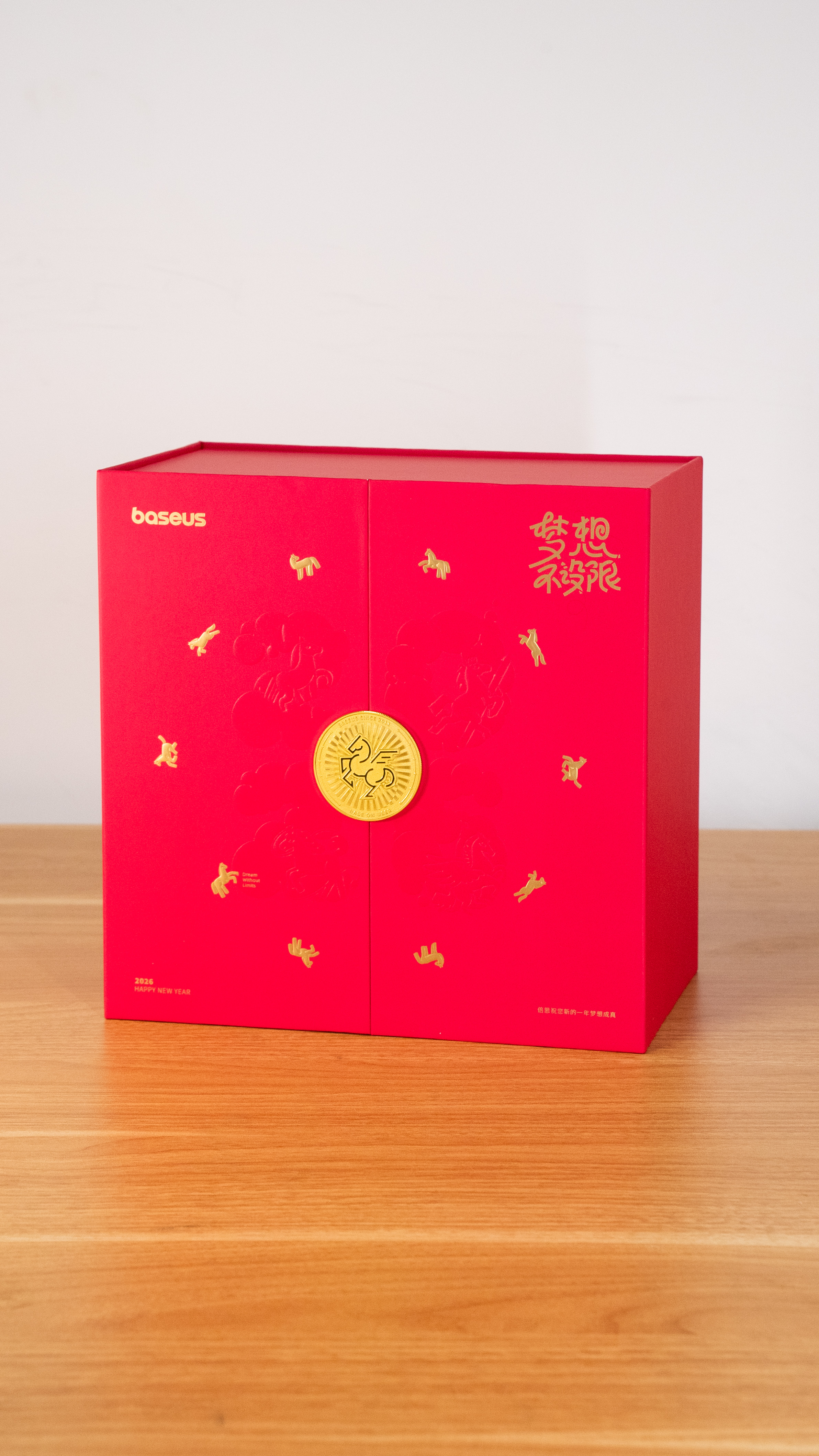 今天收到倍思新春礼盒,完全没想到包装还有机关!马年金币放进旋转木马音乐盒,立刻响起欢乐旋律,年味瞬间到位。盒子里是倍思的充电宝和耳夹耳机,外加冰箱贴和红包,想要的举手?感觉这个礼盒留着都能当收藏。