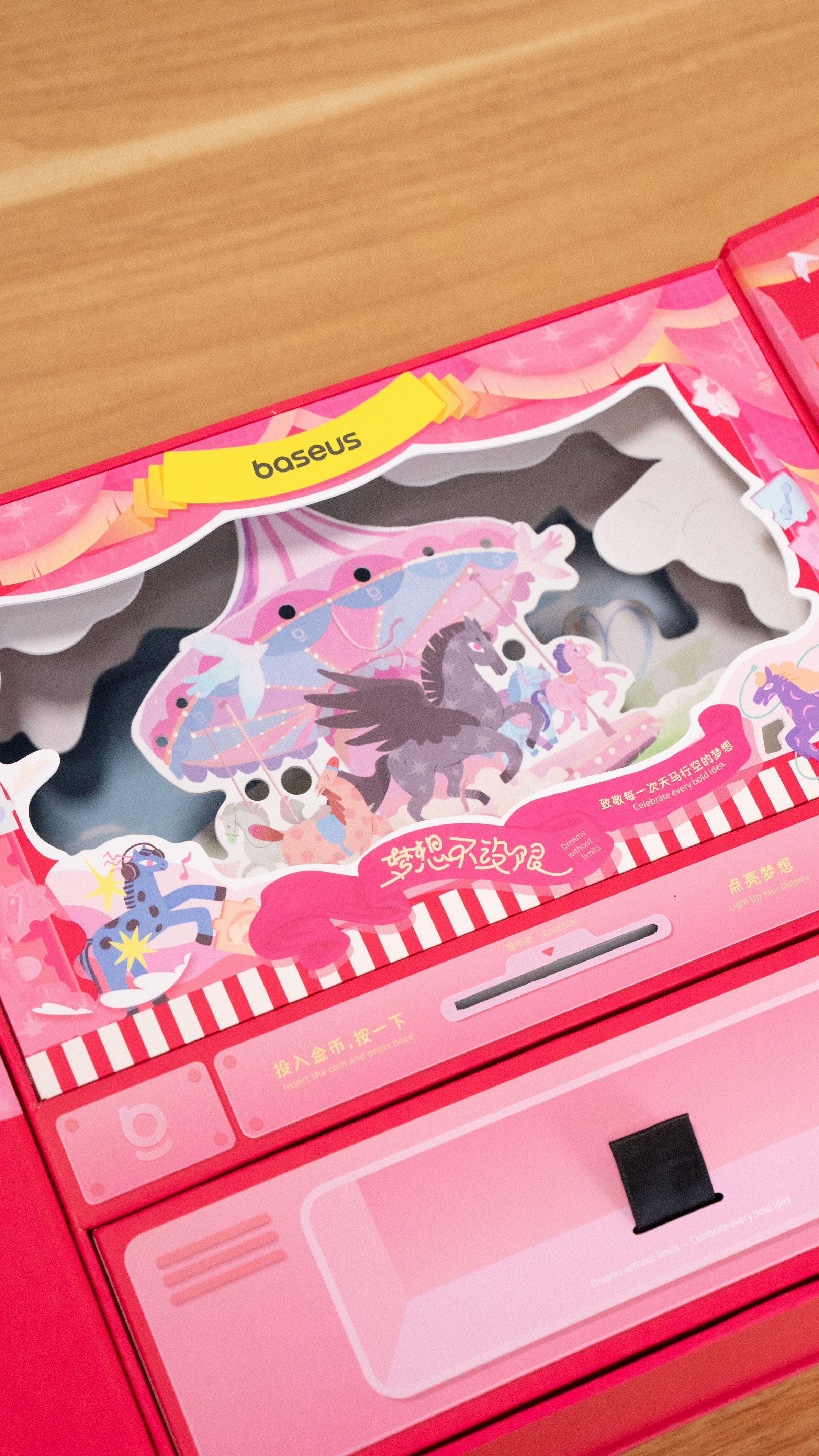 今天收到倍思新春礼盒,完全没想到包装还有机关!马年金币放进旋转木马音乐盒,立刻响