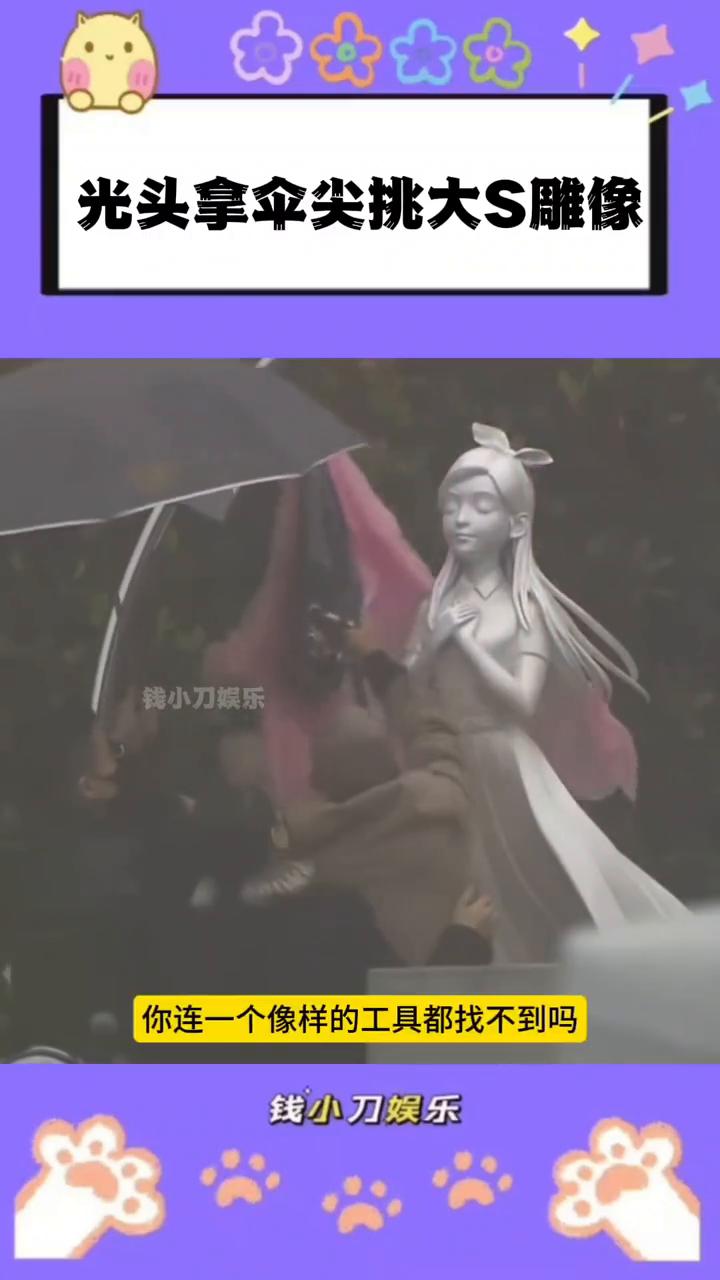 光头拿伞尖挑大S雕像。 钱小刀娱乐。 真的服了这个光头了,弄个雕像跟大S一点都不像也就算了,给雕像揭幕的时候居然是拿雨伞尖去挑。一年的时间,你连一个像样的工具都找不到吗?明知道大S最爱体面,为什么连最后一点体面都不愿意给她?