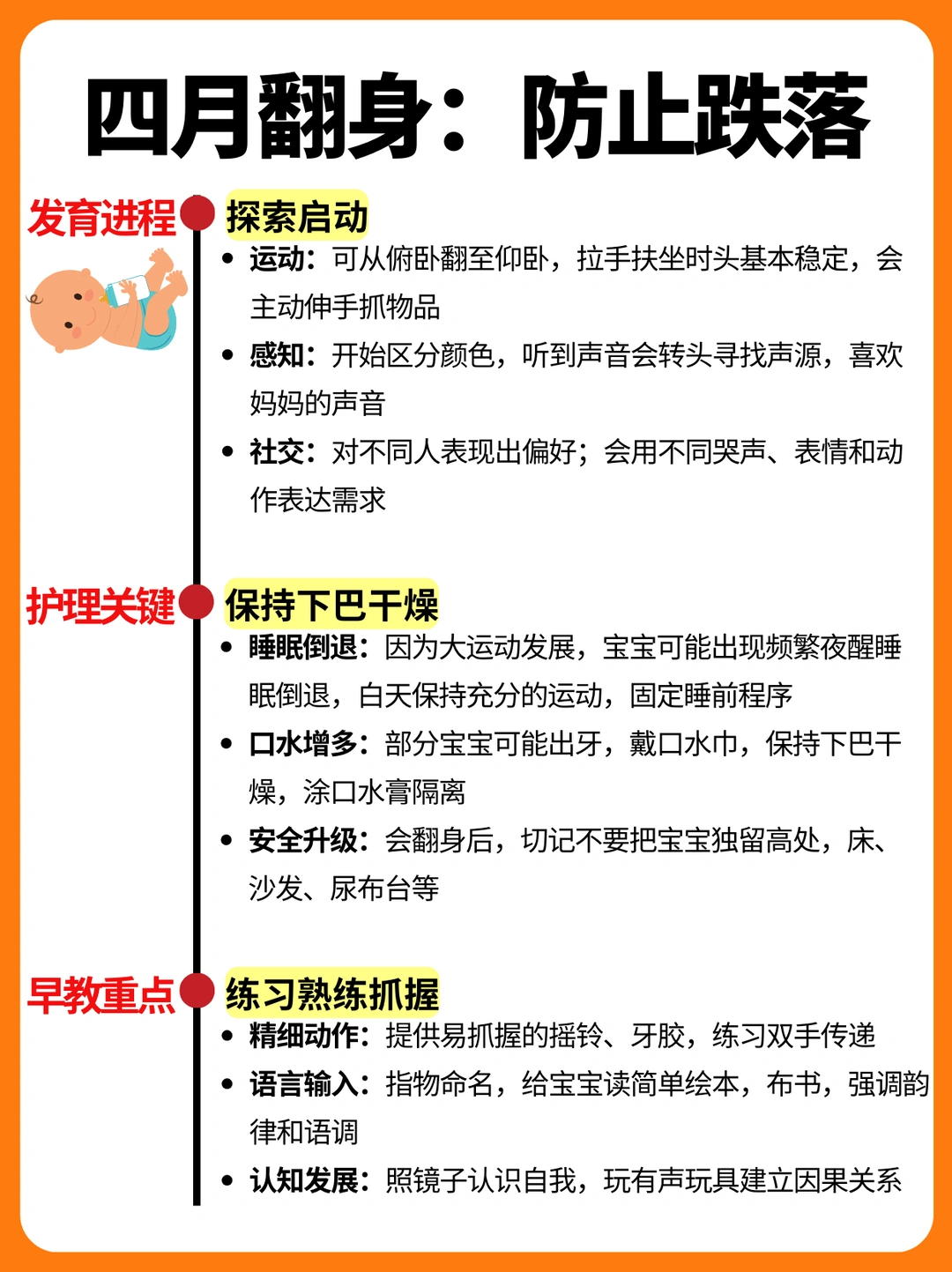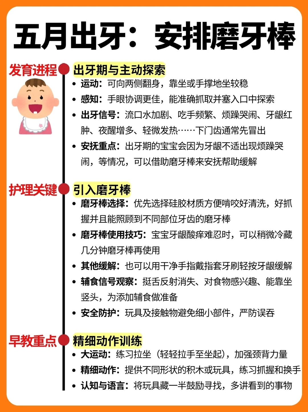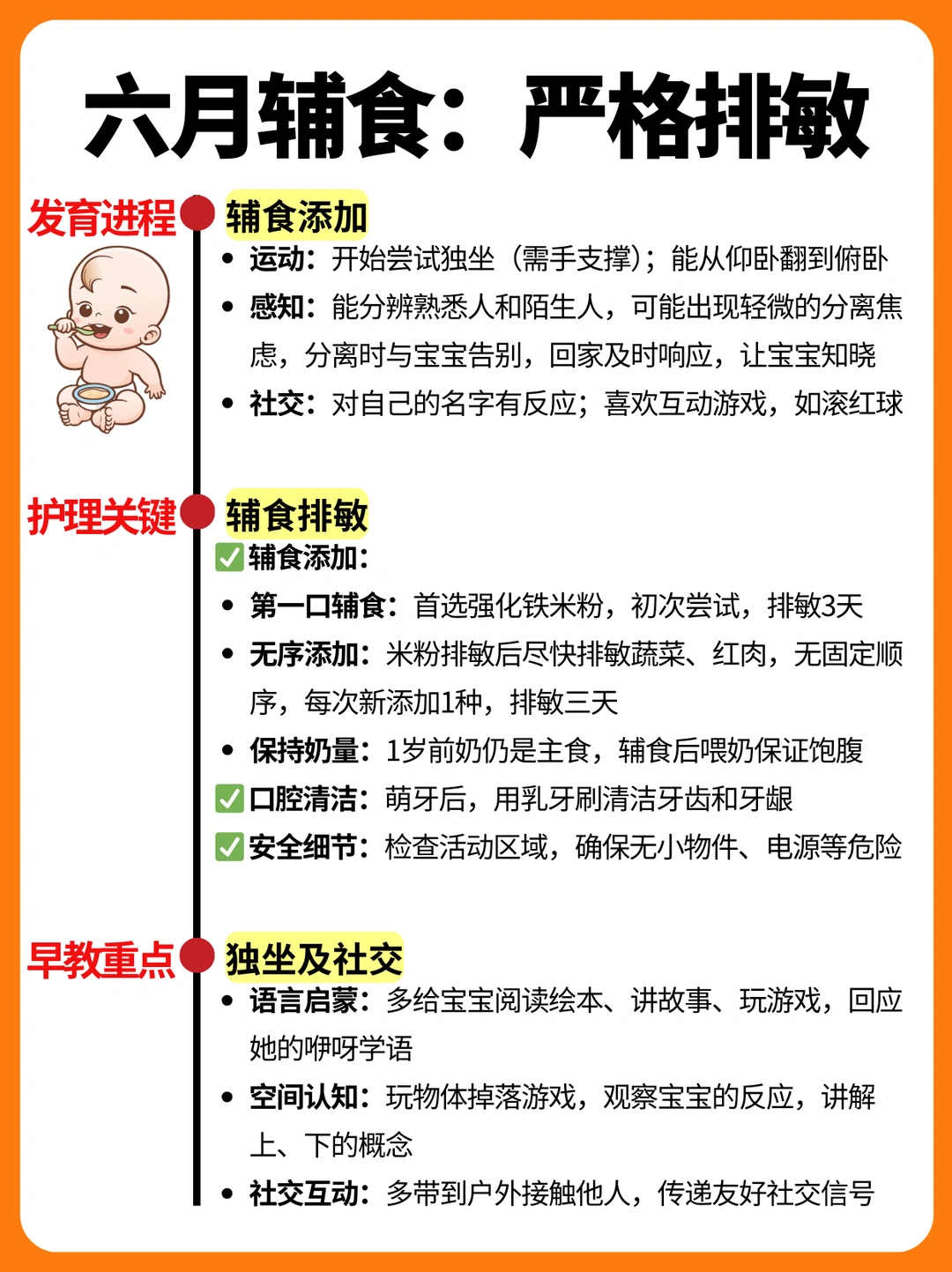 一月睡、二月闹、三月抬头、四月翻身、五月出牙、六月辅食……