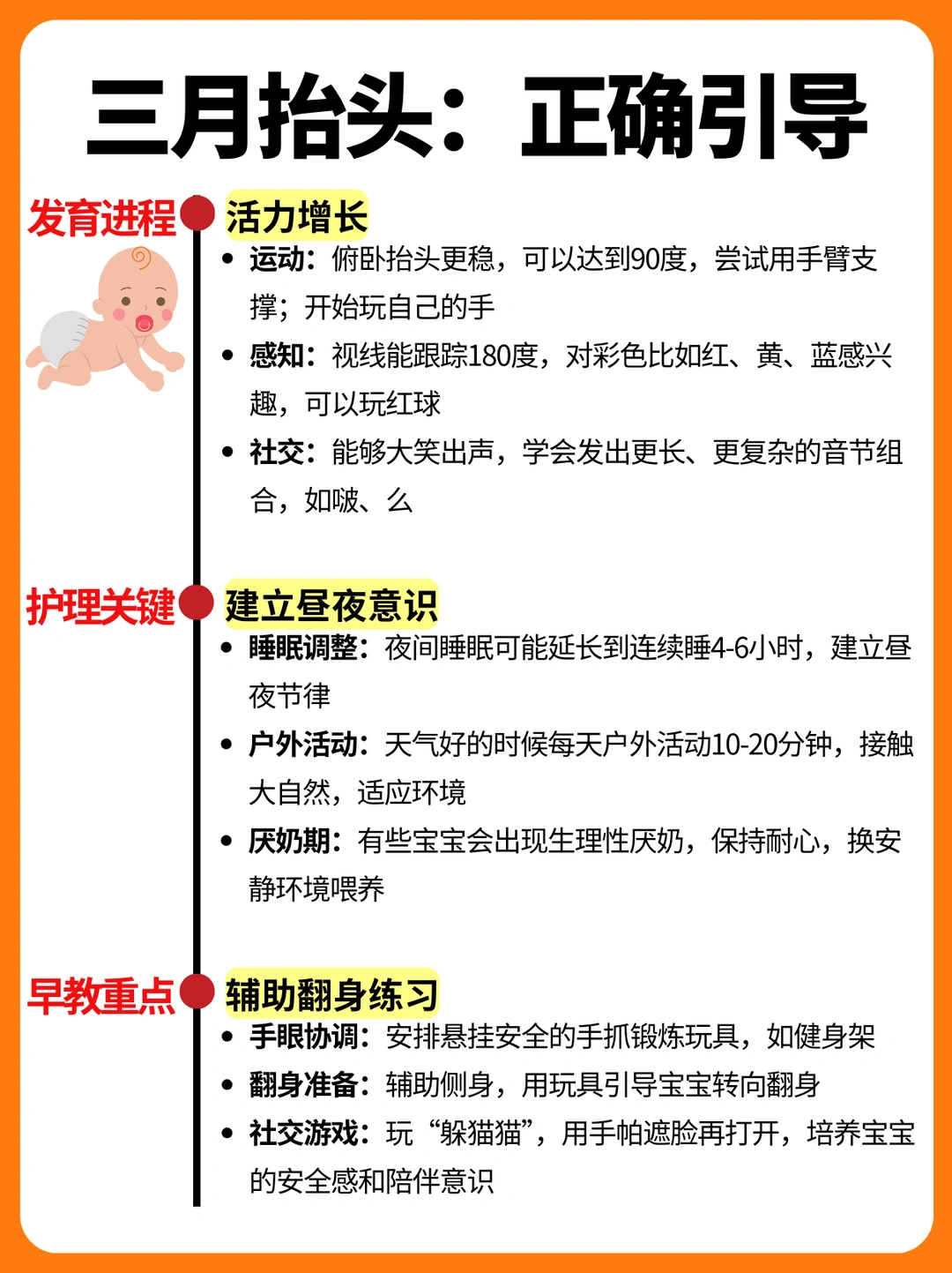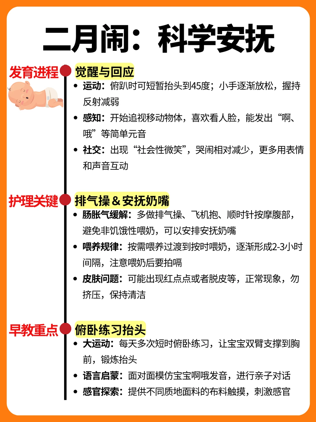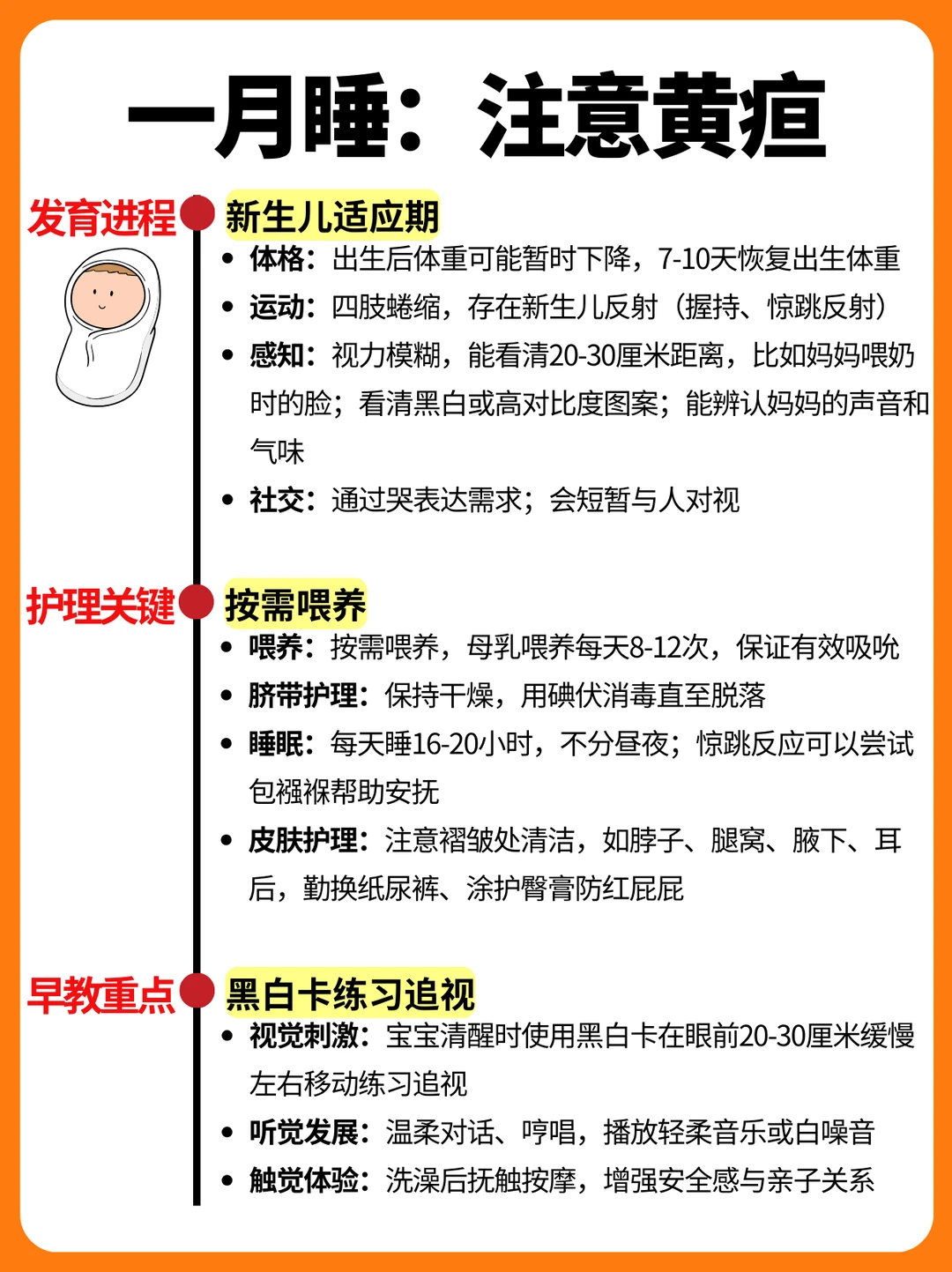 作为二胎妈妈,整理了0-6月龄宝宝每个月的发育进程、护理关键、早教重点,分享给各位新手爸妈们!具体可以看图1-7