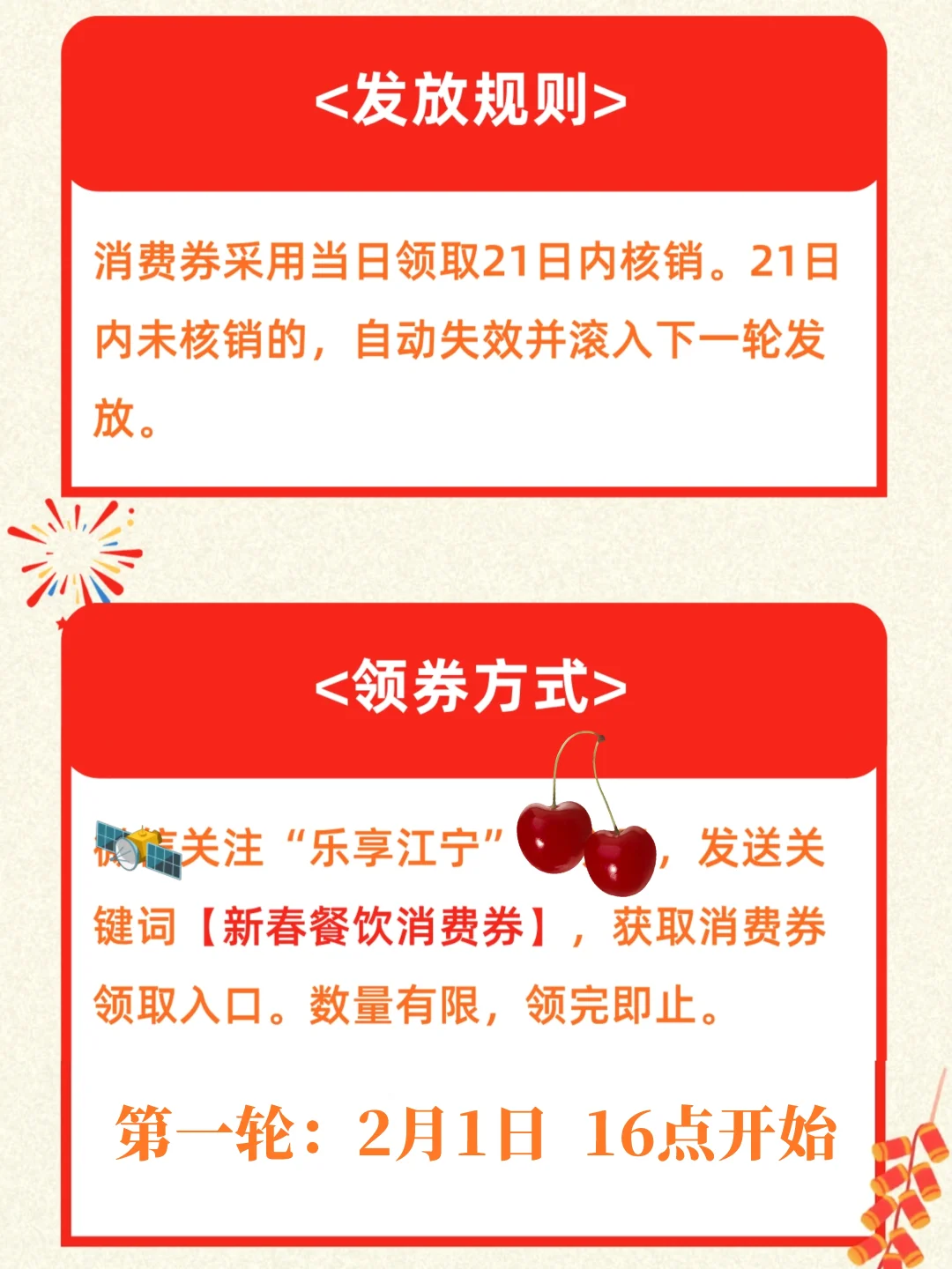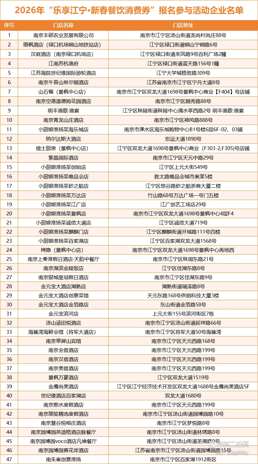 📖活动信息:乐享江宁·新春餐饮消费券