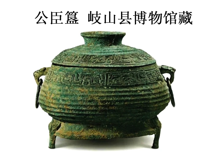 今介绍公臣簋,出土四件,形制、纹饰完全相同,大小略有出入。鼓腹,弇口,有盖(两件失盖)。兽首衔环耳,圈足下有三个兽面附足,盖面隆起,上有圈状捉手,盖沿和器沿饰窃曲纹,腹部饰瓦纹。