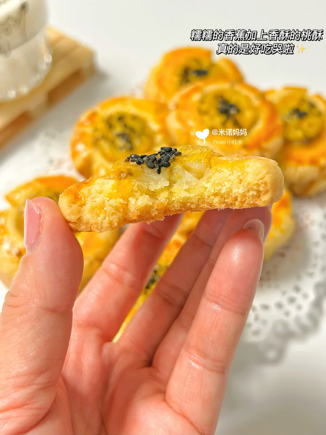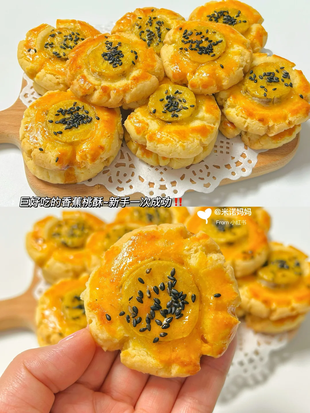放三天还是酥酥的香蕉桃酥,已加入新年菜单,做饭后甜点巨好吃😋,快去交作业吧[拥抱R]