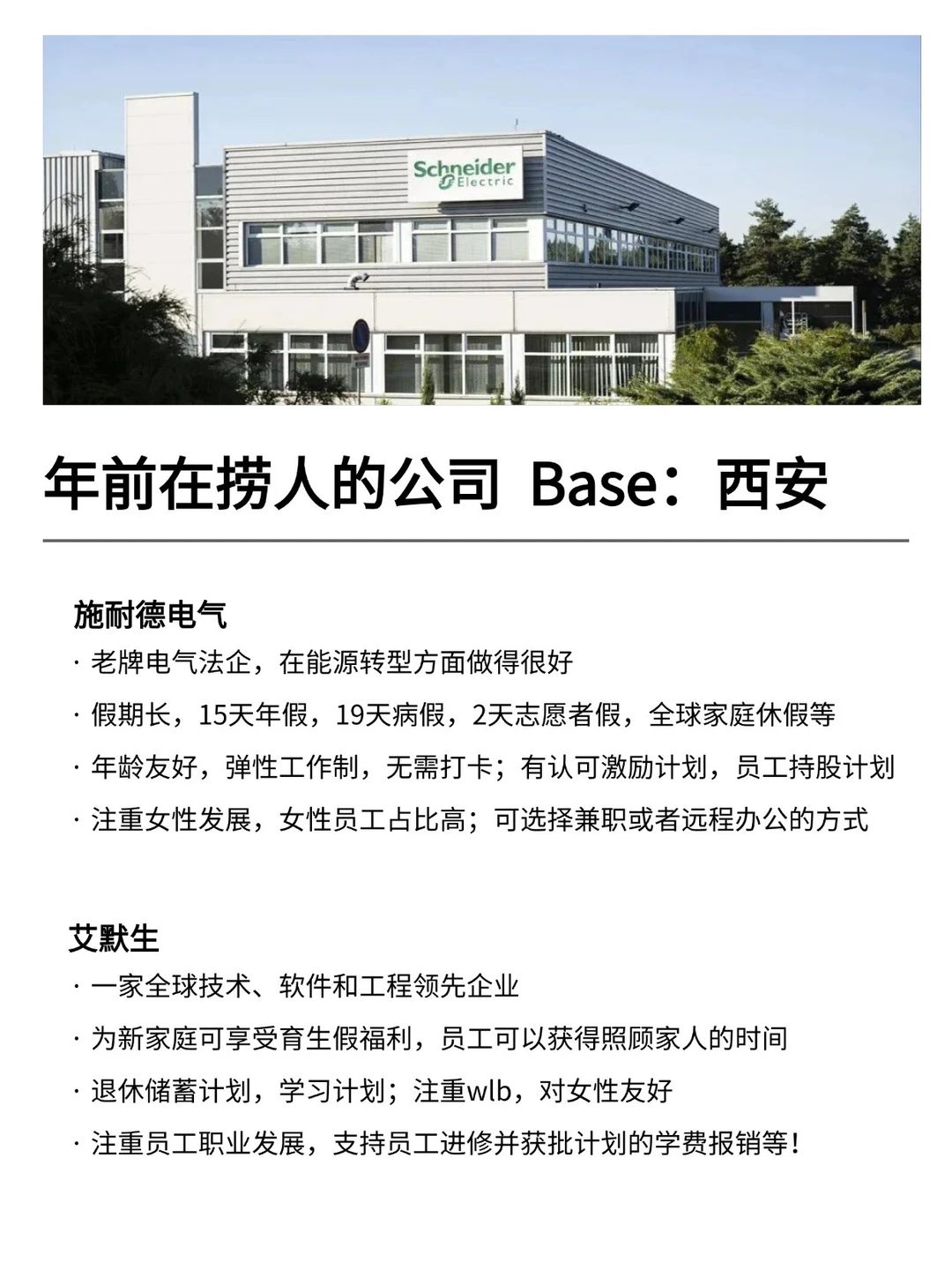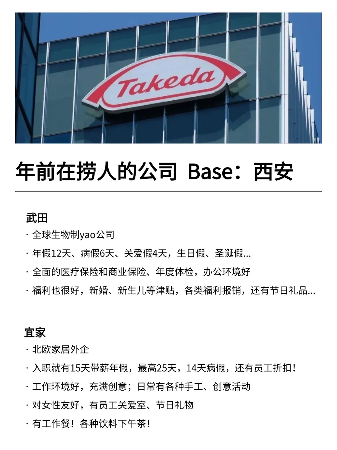 西安发展真的越来越好,有不少小而美、冷门宝藏的公司,机会是真的很多的! 特别是有不少小众冷门的外企,真心建议大家可以去试试 · 为什么还是值得去外企? ▪️氛围好,对女性友好,年假长,基本上都是10天起步 ▪️很多还都支持居家办公、福利完善,是真的能实现WLB ▪️待遇也还不错,想在年前找工作的真的可以考虑考虑~ · 坚持日更✊🏻,帮大家在找工作路上顺利拿 offer! ·