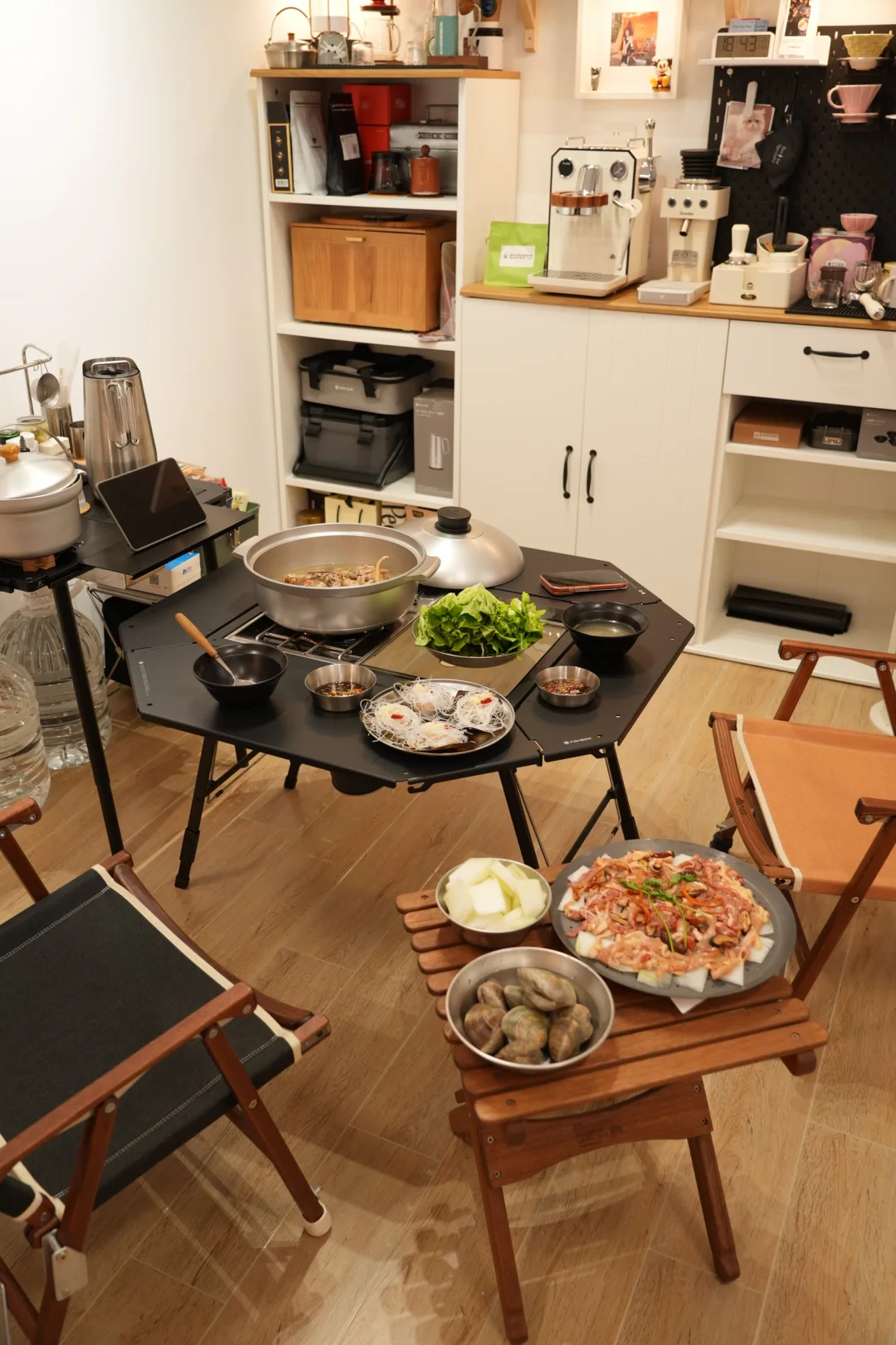 家里的茶几,椅子,餐桌,边桌都是用着露营装备,最近给家里增加了点新年的气氛,不出去露营的时候就宅家里露营