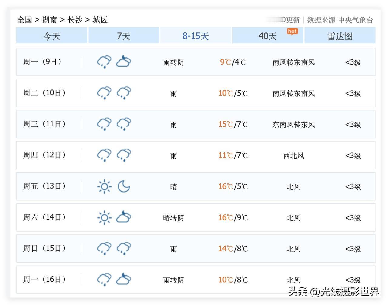 湖南省长沙市,即将迎来断崖式的大降温啊!2月4日,长沙市,最高气温20度!但是,2月6日和7日,长沙市降雨降温,大降温,气温暴跌至2-10度……气温暴跌啊! 太刺激了! 当然,不仅仅是长沙市,同期,长江中下游大多数地区都是这样的过山车天气! 快速回暖,快速暴跌……非常刺激!上海,南京,杭州,武汉……都差不多这样! 哎! 更坏的坏消息是,2月9日到16日,长沙市经常下雨…… 2月15日,长沙市下雨! 2月16日,除夕夜当天,长沙市下雨!