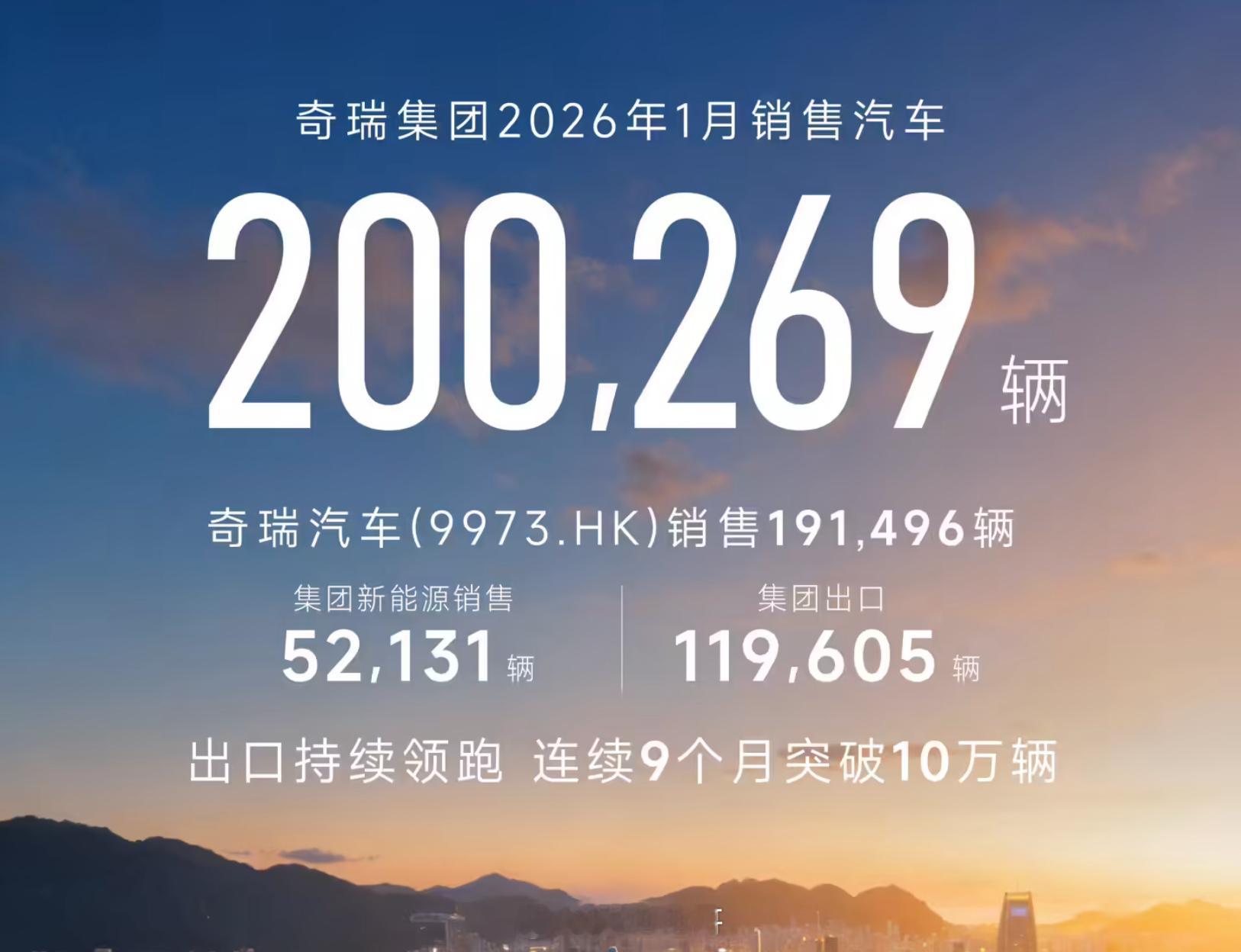奇瑞集团的出口表现最为突出,1月出口汽车119605辆,同比增长48.1%,连续9个月出口突破10万辆,出口占比接近60%。不过这是包含了新能源车与燃油车的合计数目,区分后的具体数据未公布。