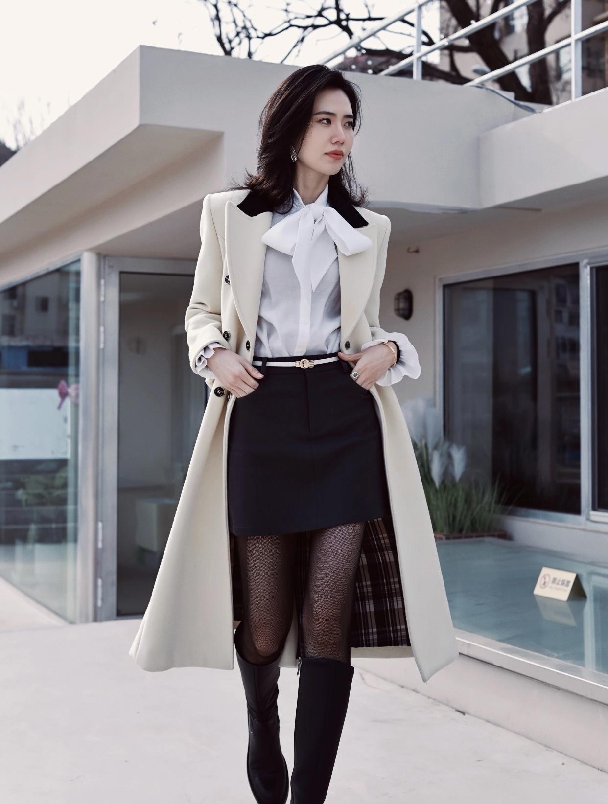 每日搭配分享·时尚穿搭都市时尚风,优雅白衬衫搭配米色大衣,尽显知性魅力!