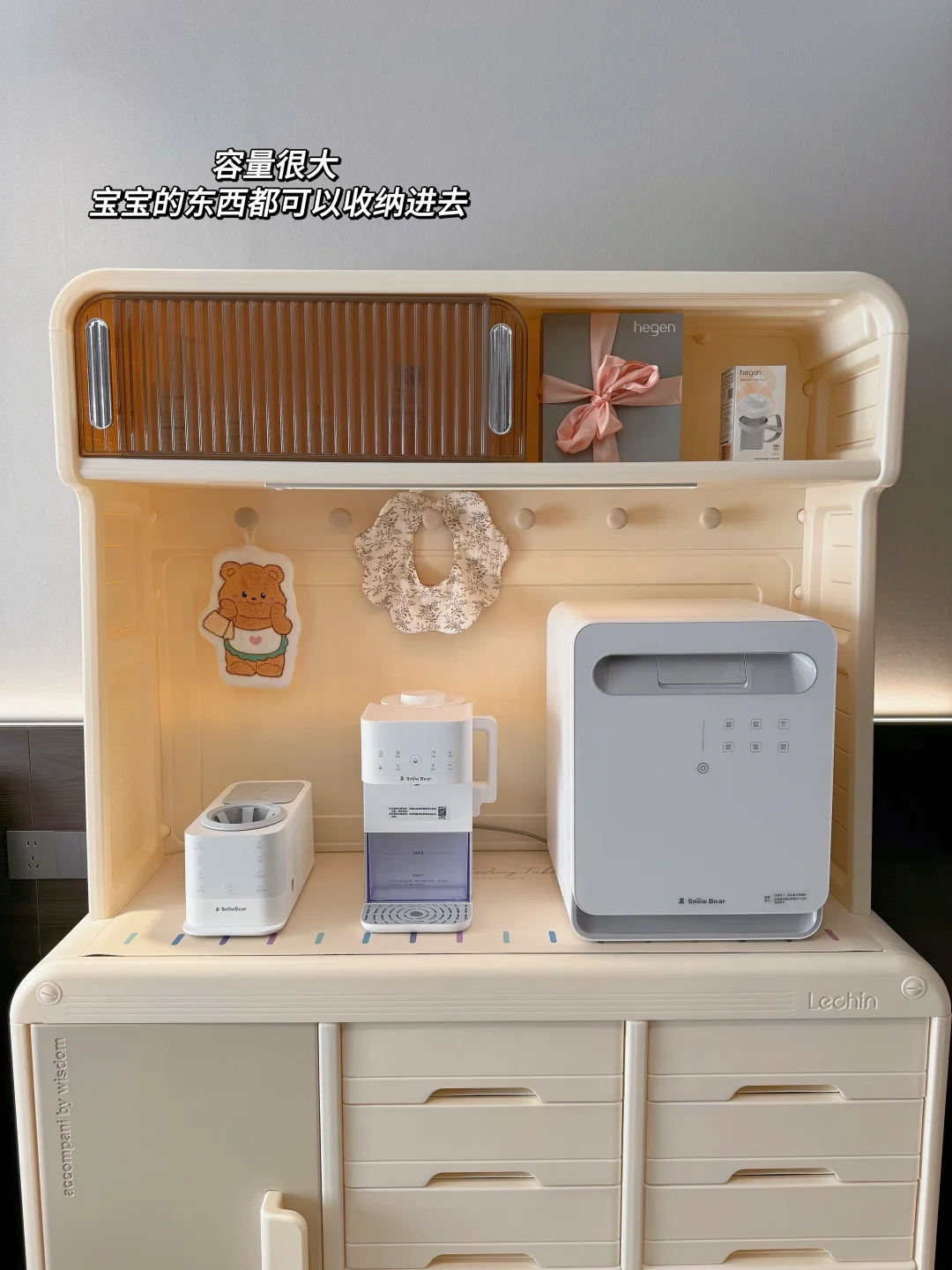 ▪️可折叠婴儿床 搭配的护脊睡垫摸着很舒服,自带了轮子,以后照看宝宝也方便。尿布台、收纳篮也都配的有,省得以后花两份💴了,期待宝宝躺在里面的样子~ ▪️餐椅摇椅二合一 既是餐椅 + 摇摇椅 又是早教机 + 尿布台 + 哄睡小床! 月子里给娃晒太阳、喂奶、做抚触、换尿布全搞定 ▪️婴儿推车 在家的时候客厅白天睡小觉放在睡篮子里 出了月子出门溜溜 使用率也很高 ▪️喂养台 一站式喂养 宝宝的用品可以统一放在这个柜子里 抽屉收纳 所有东西位置固定 很方便