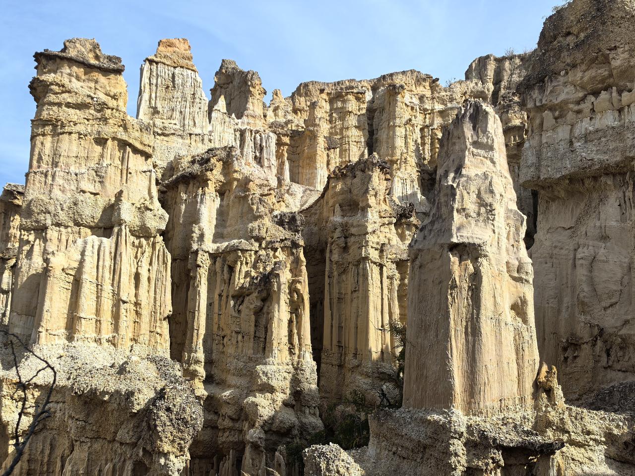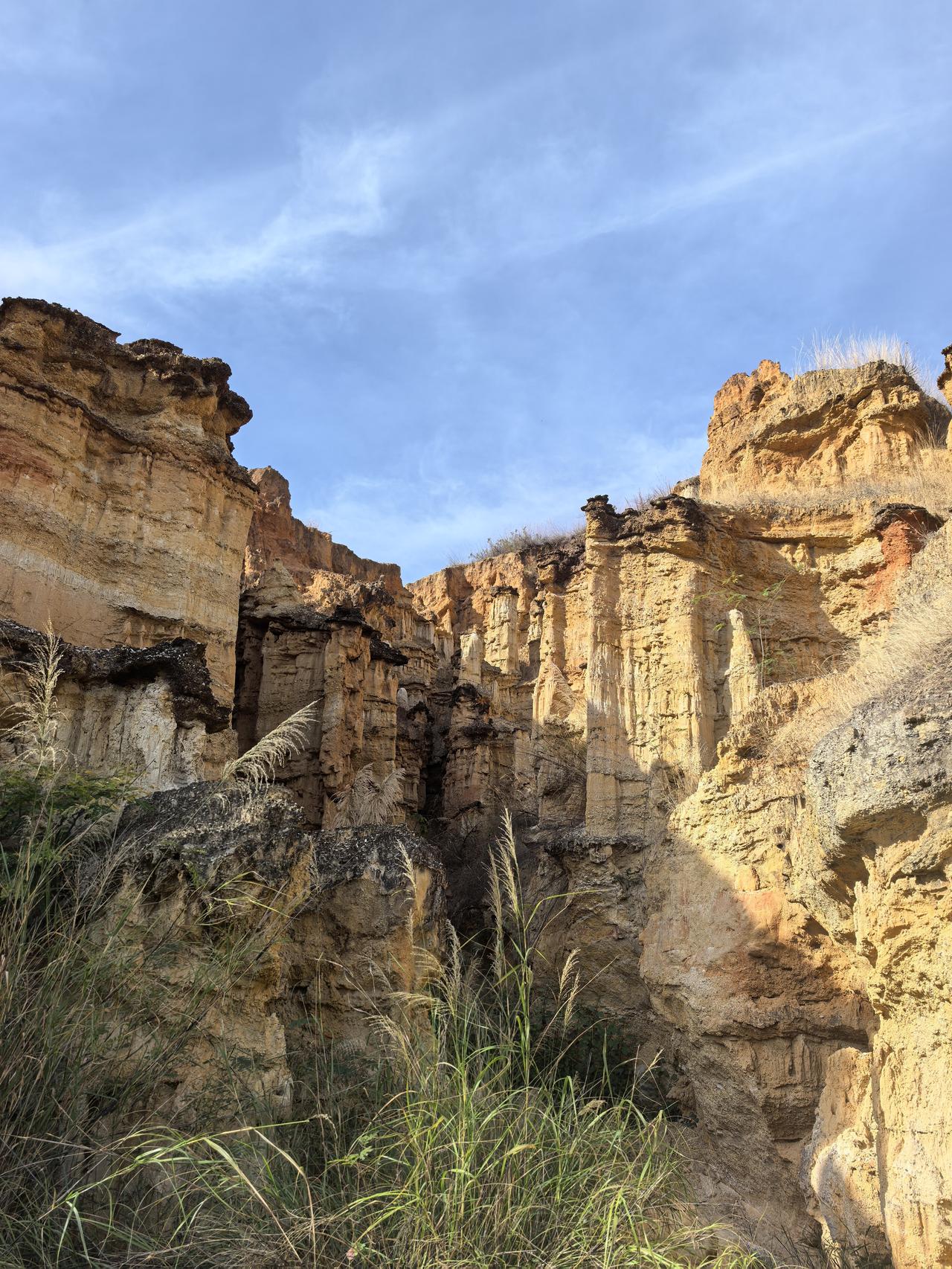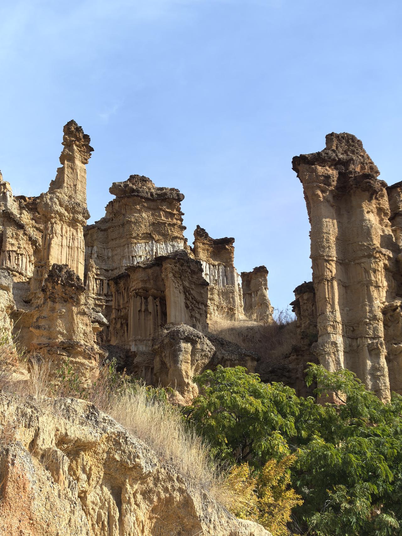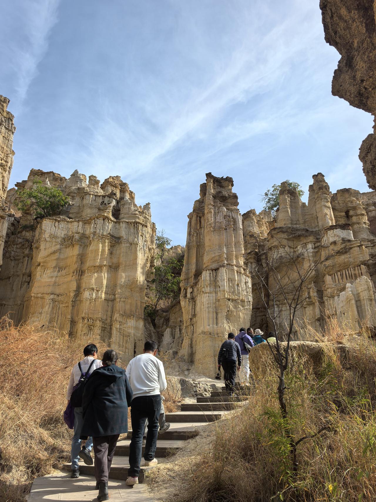元谋土林景区:惊叹大自然的神奇 今天,我们离开元谋,前往永仁。原计划今天去攀枝花的,听说被称为中国阳光城的永仁也不错,于是我们便计划先顺道去永仁。 去永仁要途径元谋土林,我们就先去元谋土林打卡。从元谋出来,走京昆高速,40多分钟便到了土林景区,门票60元/人,观光车10元/人。我们选择坐观光车到山顶观景台,再步行向下,一到观景台,就被眼前的景致惊艳到了。 据说亿万年前,这里是大海。非常感叹大自然的鬼斧神工与神奇。置身其中,仿佛走进了时间雕刻的殿堂,亿万年的风与水,在这里挥洒成一座座沉默的丰碑。这里没有草木的柔语,只有石头用最坚硬的形态,诉说着最漫长的故事。站在观景台远眺,忽然觉得自己也成了这史诗里一个小小的标点,被自然的神笔轻轻点入苍茫。我们纷纷举起手中的相机,记录眼前形态各异的美景。 从土林宾馆景区出来,我再上京昆高速,经40分钟车程,便到了永仁。