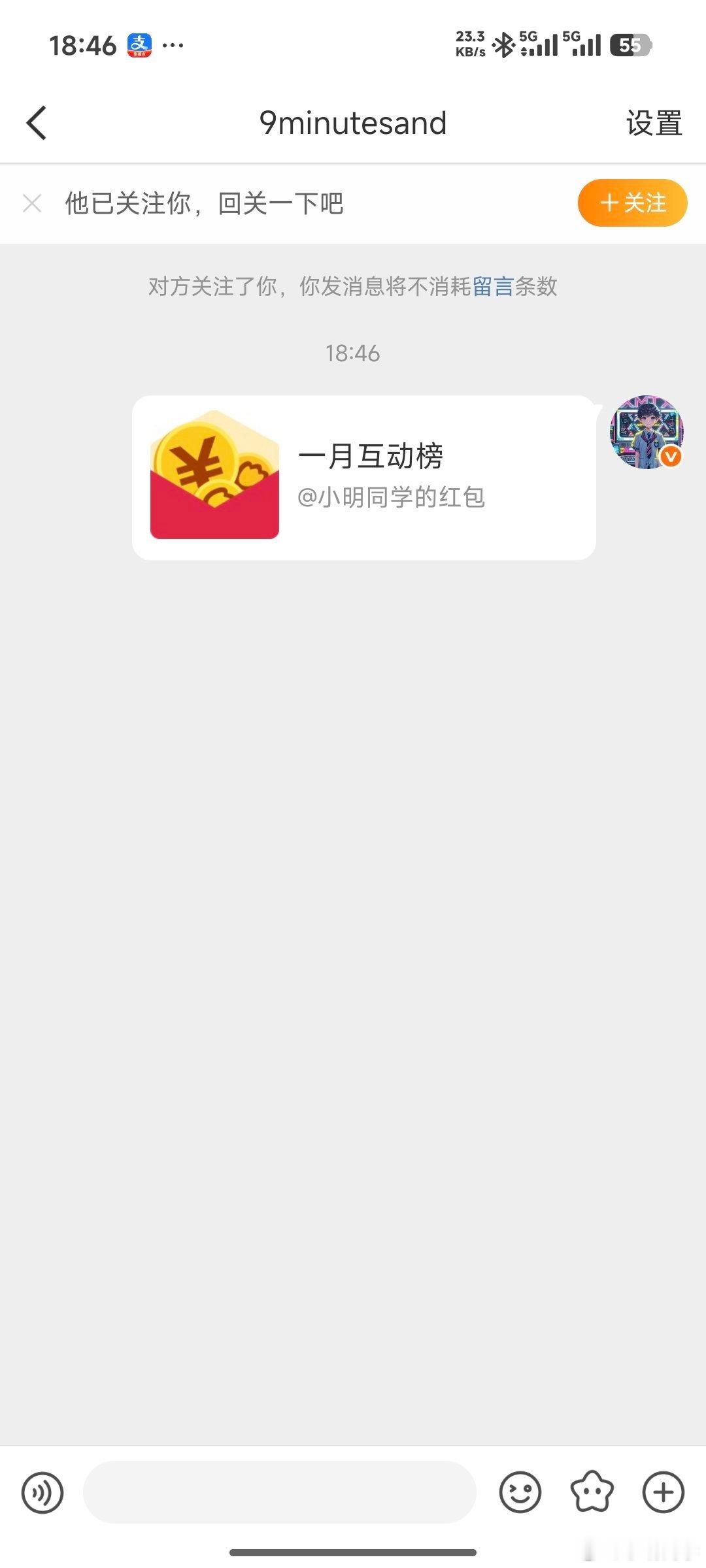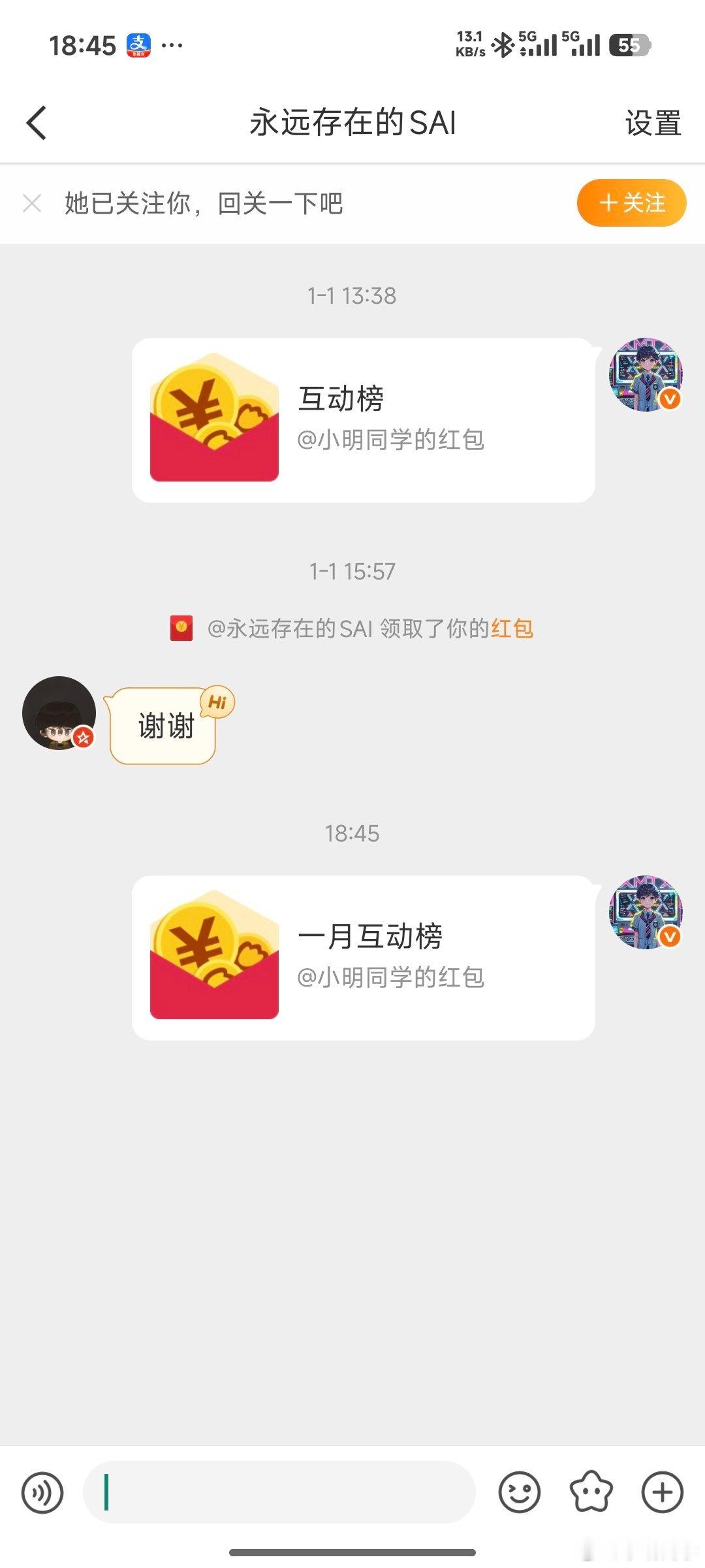 一月互动榜单排名22.33.44.55.66.77.88.99名的老铁们已经私信大家红包了,感谢支持小明同学的红包