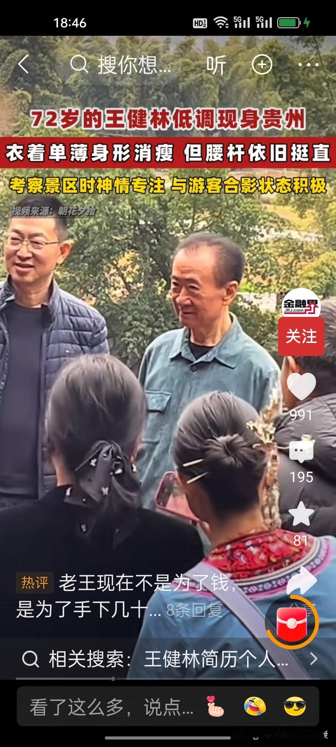 72岁的王健林又上热搜了!身形消瘦却腰杆笔直,在贵州考察文旅项目时依旧神采奕奕。这位曾经的地产大佬,如今仍奋斗在一线。有个设想,如果王健林不搞文旅,去直播带货,就带那些地方特色产品,是不是债能更快还清? 很多人说,凭他不跑路、不欠薪的军人做派,加上国民度,肯定场场爆满,稳坐地产界带货一哥。要知道,他当年“先定一个小目标”的豪言还在耳边,如今这份韧性更让人敬佩。 比起躺平,他选择奔波;比起退场,他选择再战。这样的企业家,就算真的学李亚鹏拿起直播架,网友们的火箭估计也能刷到爆。王健林如果真的带上王思聪一起直播带货,估计更会是场场爆满。