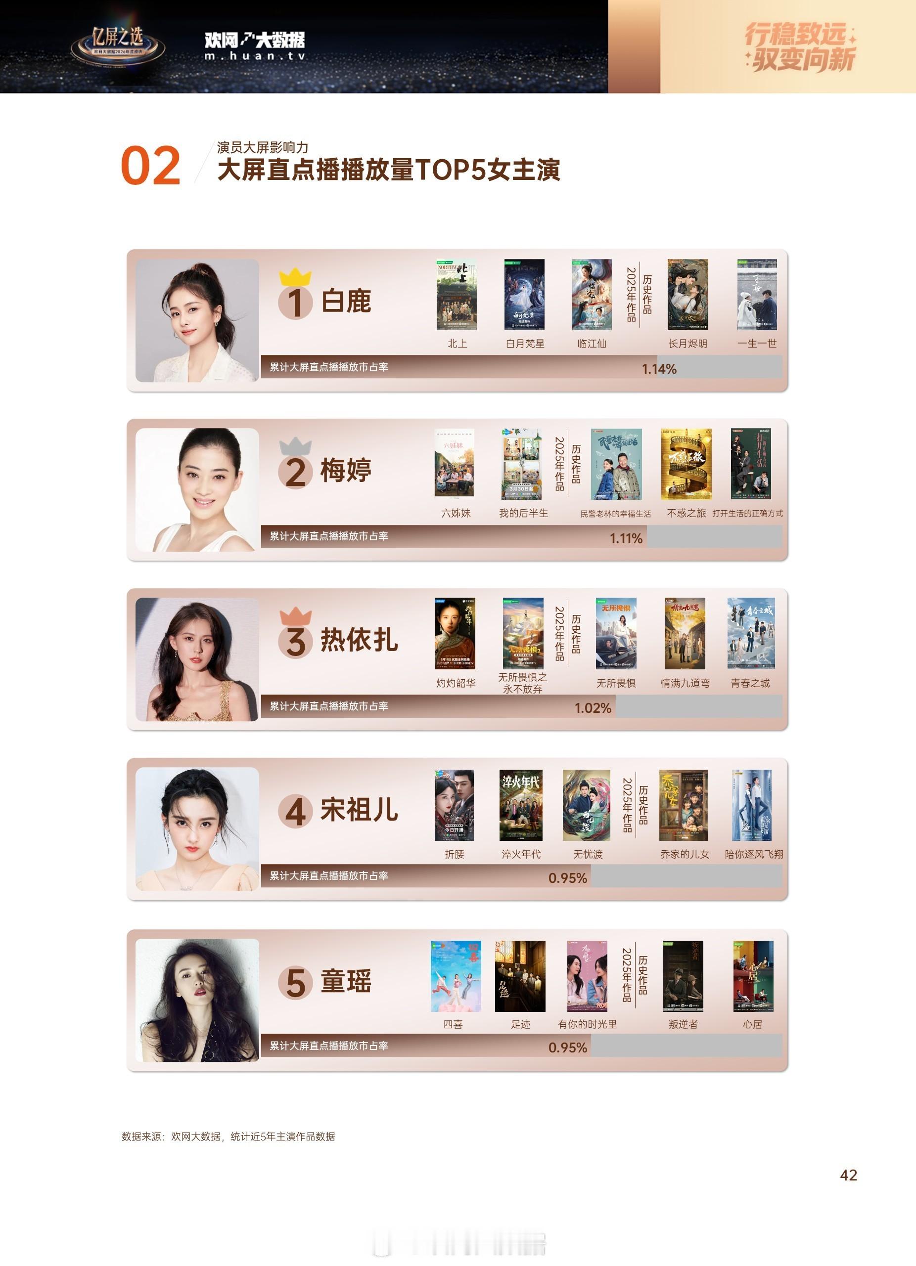 恭喜白鹿大屏影响力女演员登顶top1!同时期待2月5号即将在优酷播出的唐宫奇案!李佩仪好帅!欢网大数据2025年度报告——亿屏之选大屏影响力TOP5女演员