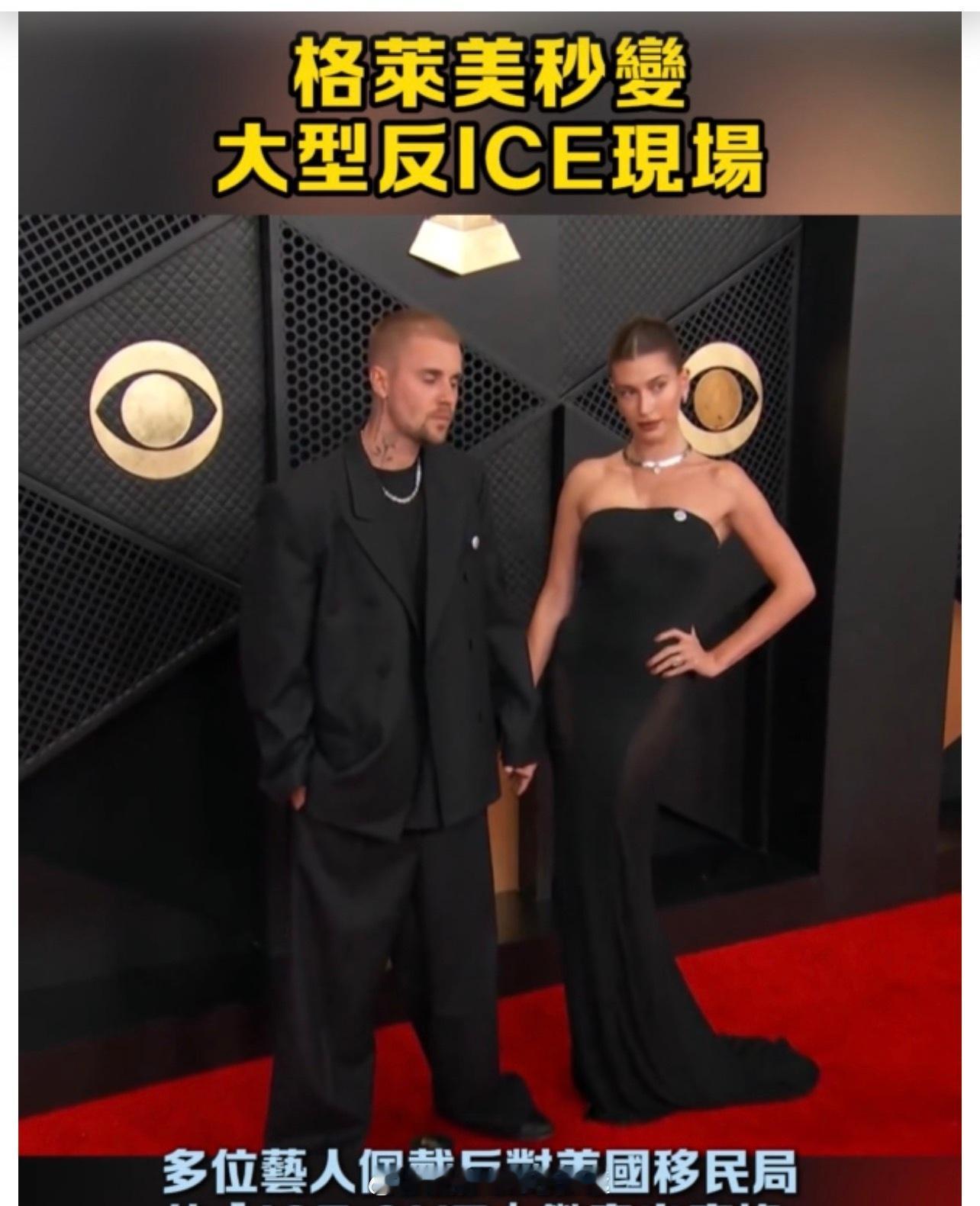 「(有視頻)第68屆格萊美頒獎典禮舉行..多位巨星佩戴「ICE OUT!」徽章出席 ..」《香港大公報》迅:入內看視頻及全文:网页链接 即时娱乐新闻 娱乐圈 电影 ..
