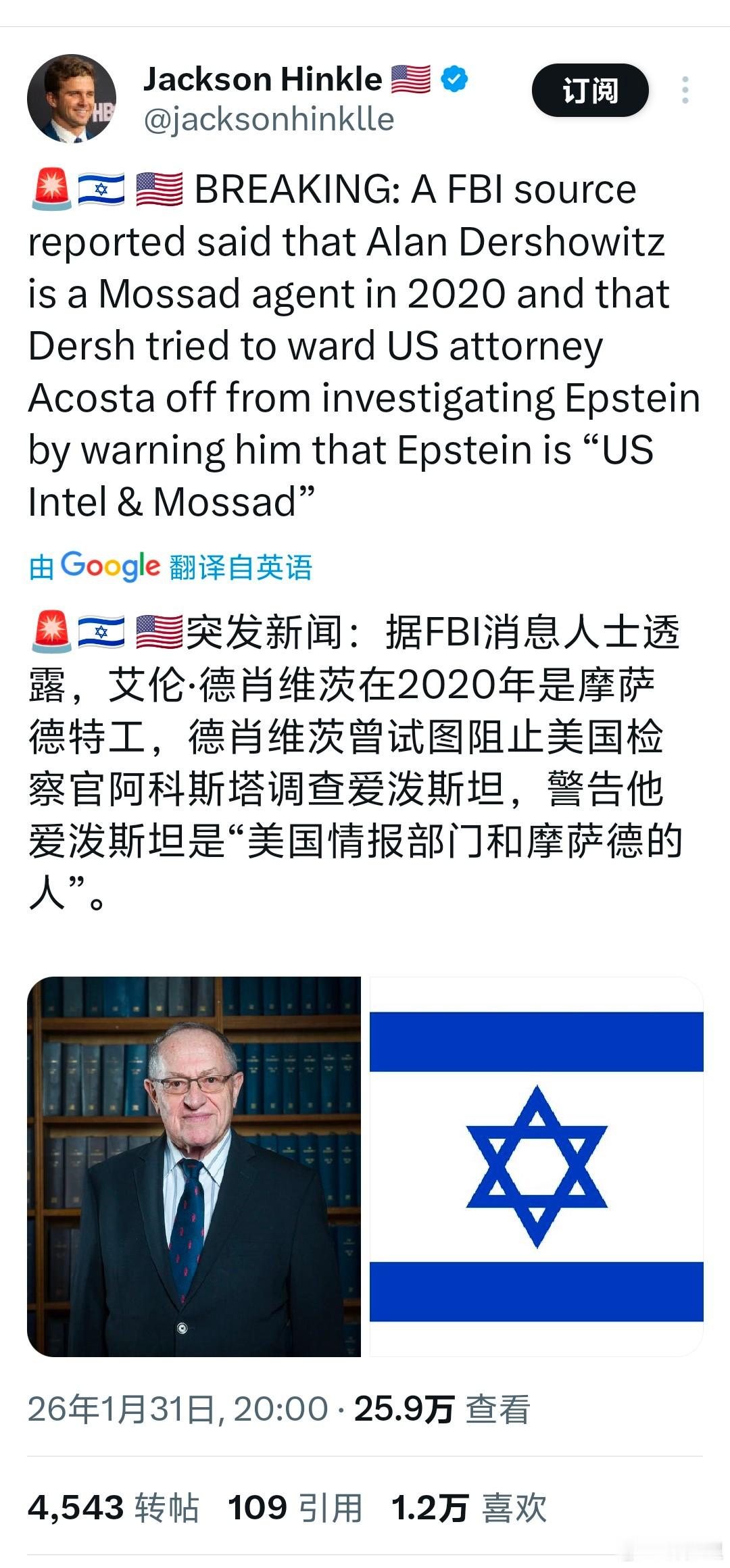罗X的法律偶像艾伦·德肖维茨(Alan M. Dershowitz),美国著名律师,在爱泼斯坦档案中出现137次。