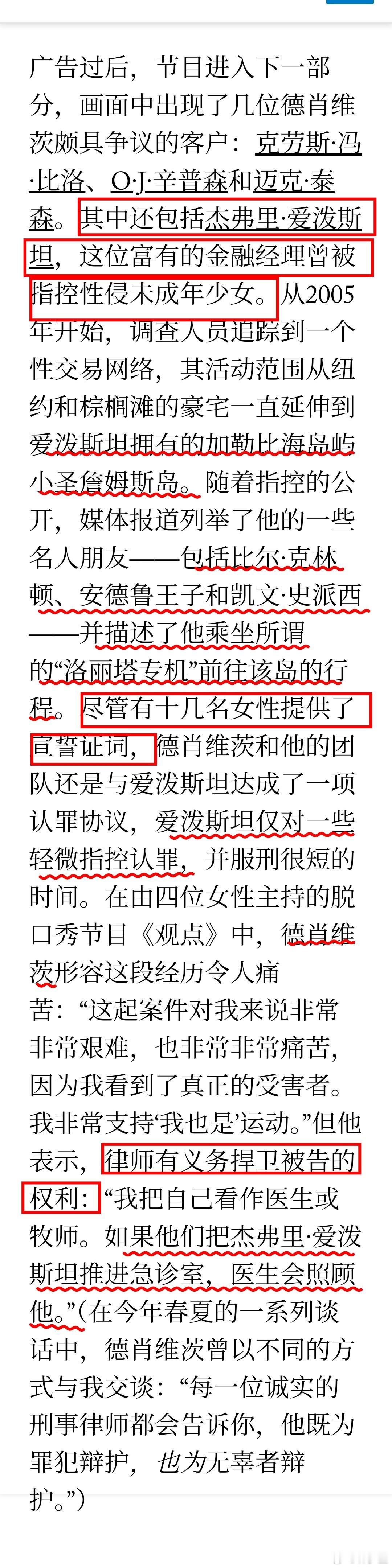 十几名受害者女性提供宣誓证词,但没有成功,正是罗某的偶像艾伦·德肖维茨为爱泼斯坦辩护。