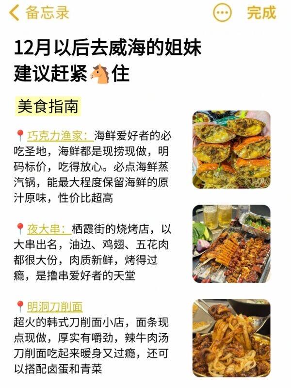 我们大清早去了火炬八街👀,冬日人少很清净,彩色房子配着冬日大海,拍出来的照片清冷又日系!我们接着走去国际海水浴场🌅,冬天的沙滩没那么多人,下午我们了逛金海湾栈桥和威海公园,。海边风很大,很冷,我们就直接去了巧克力渔家,海鲜都是现捞现做,💰明码标价,吃得放心