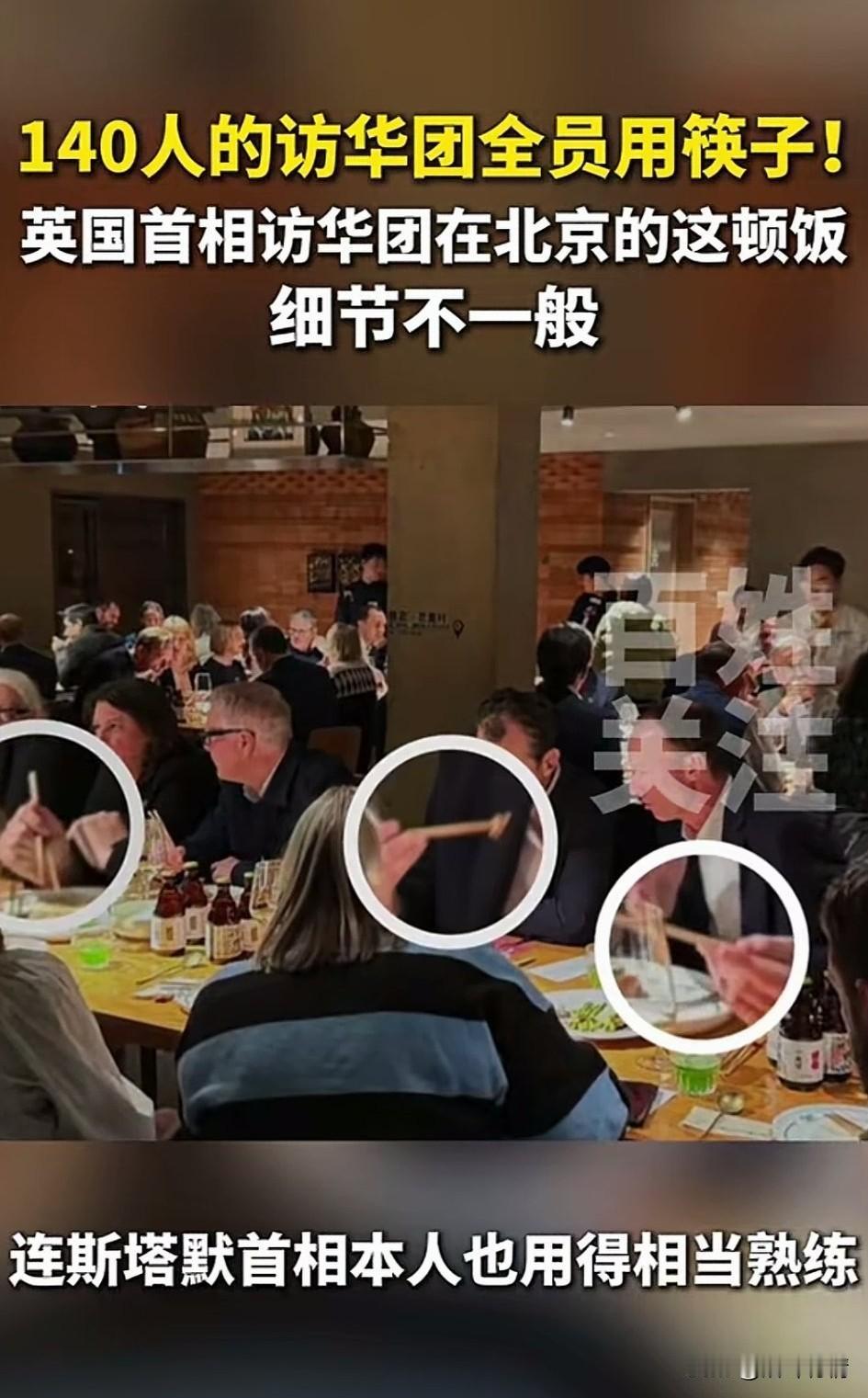 英国首相访华,在北京的这顿饭不简单,140人的使者团,居然全部都用筷子吃饭!不用刀叉! 看着就是有备而来,1840年他们带着枪炮而来,贩卖鸦片对中国人民造成了不可磨灭的伤害! 2026年的他们带着筷子而来,原因就是中国强大了,他们想和中国做朋友,对中国表达自己的善意! 就连习俗也想到了,这就是国家强大比什么都好使,这次旅行团访华就是英国承认中国的强大! 经双方要做贸易伙伴,可以说代表欧洲希望和中国世代友好,万国来贺的时代又要来了! 饭后英国首相还和工作人员开心和,这样的场面仿佛让人穿越了!国家强,人民才幸福!这是永远不变的真理! 希望我们的国家会越来越强大,到时候一定可以再现万国朝喝的大场面! 英首相访华 英国外长访华 英国专家访华