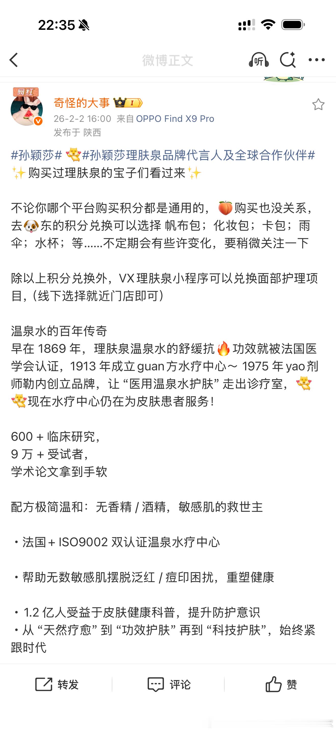 买过理肤泉的来看功课啦,可以去各平台兑换好多好多东西,积分用起来,我兑换过好几个包和杯子之类的了孙颖莎 孙颖莎理肤泉品牌代言人及全球合作伙伴