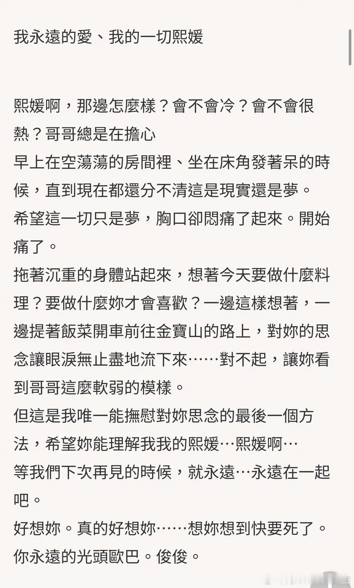 具俊晔写给大S的手写信“一边这样想着,一边提着饭菜开车前往金宝山的路上,对你的思