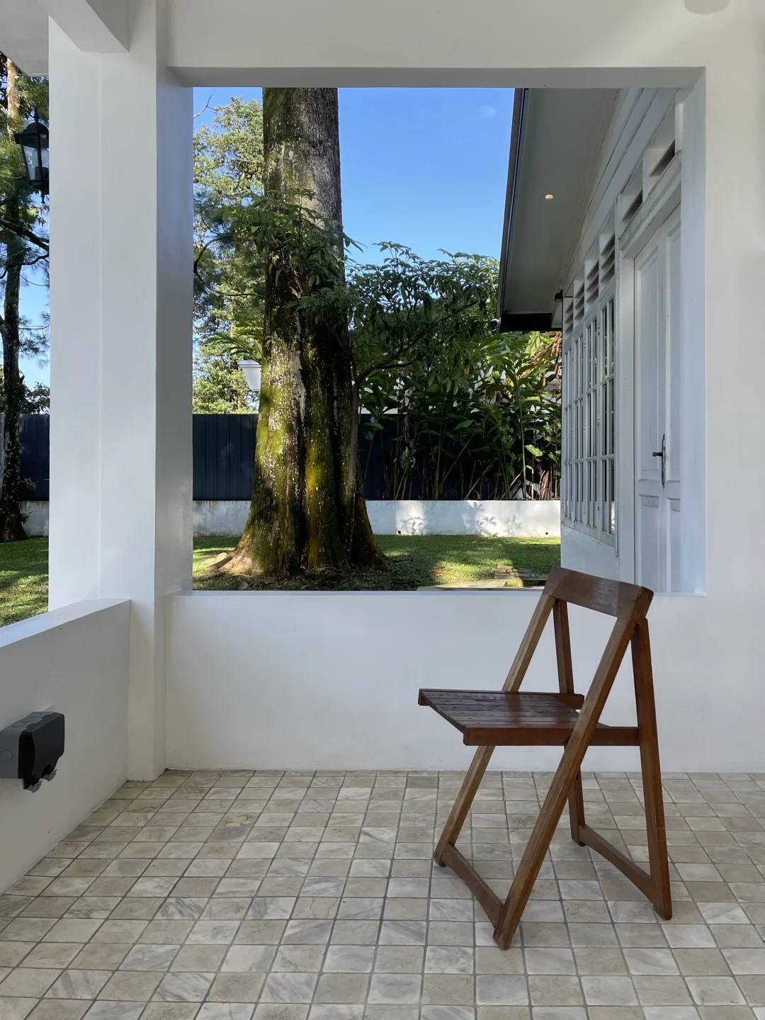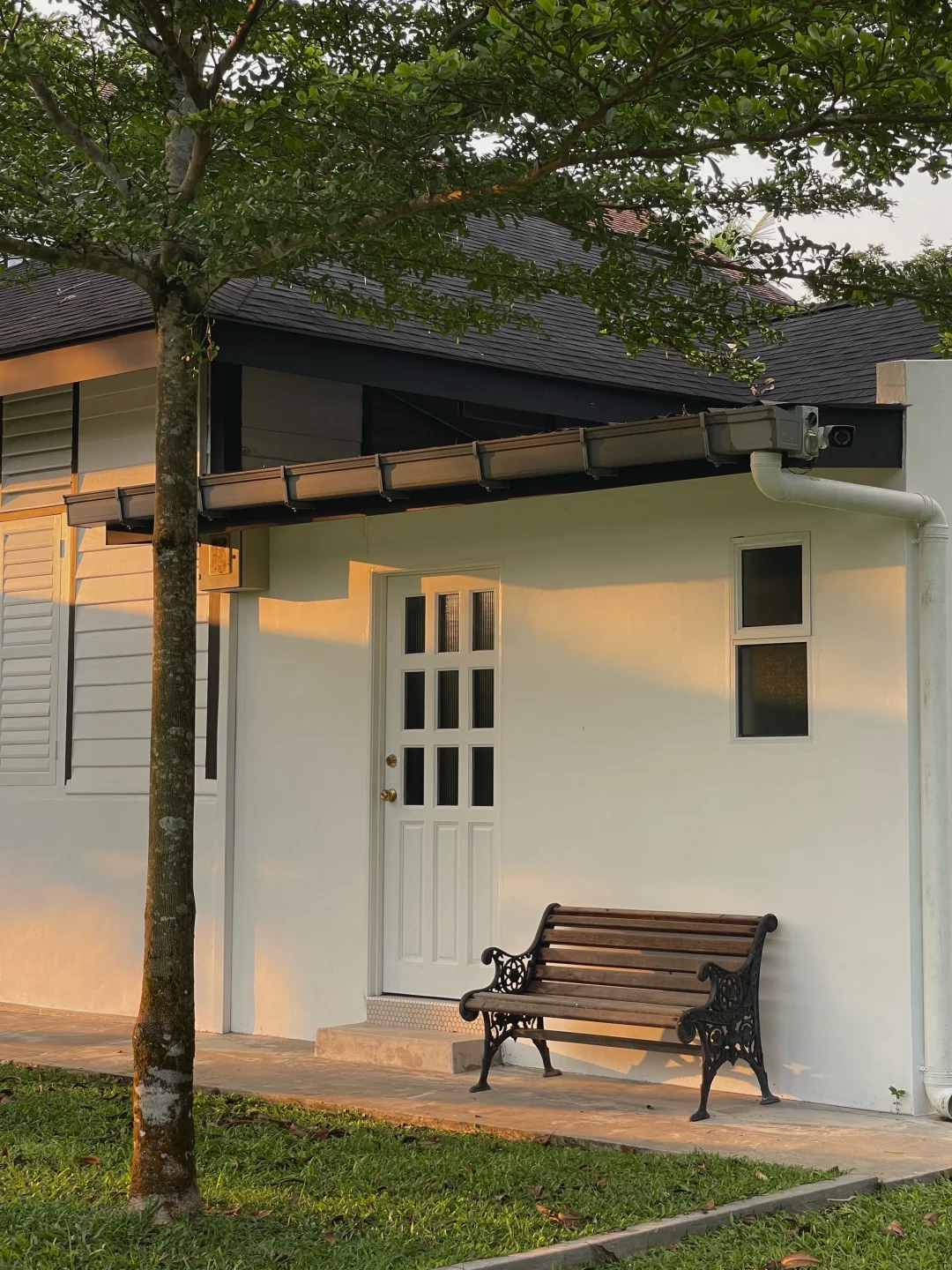 白色的Villa隐藏在绿色的草坪🍃和树木后面。