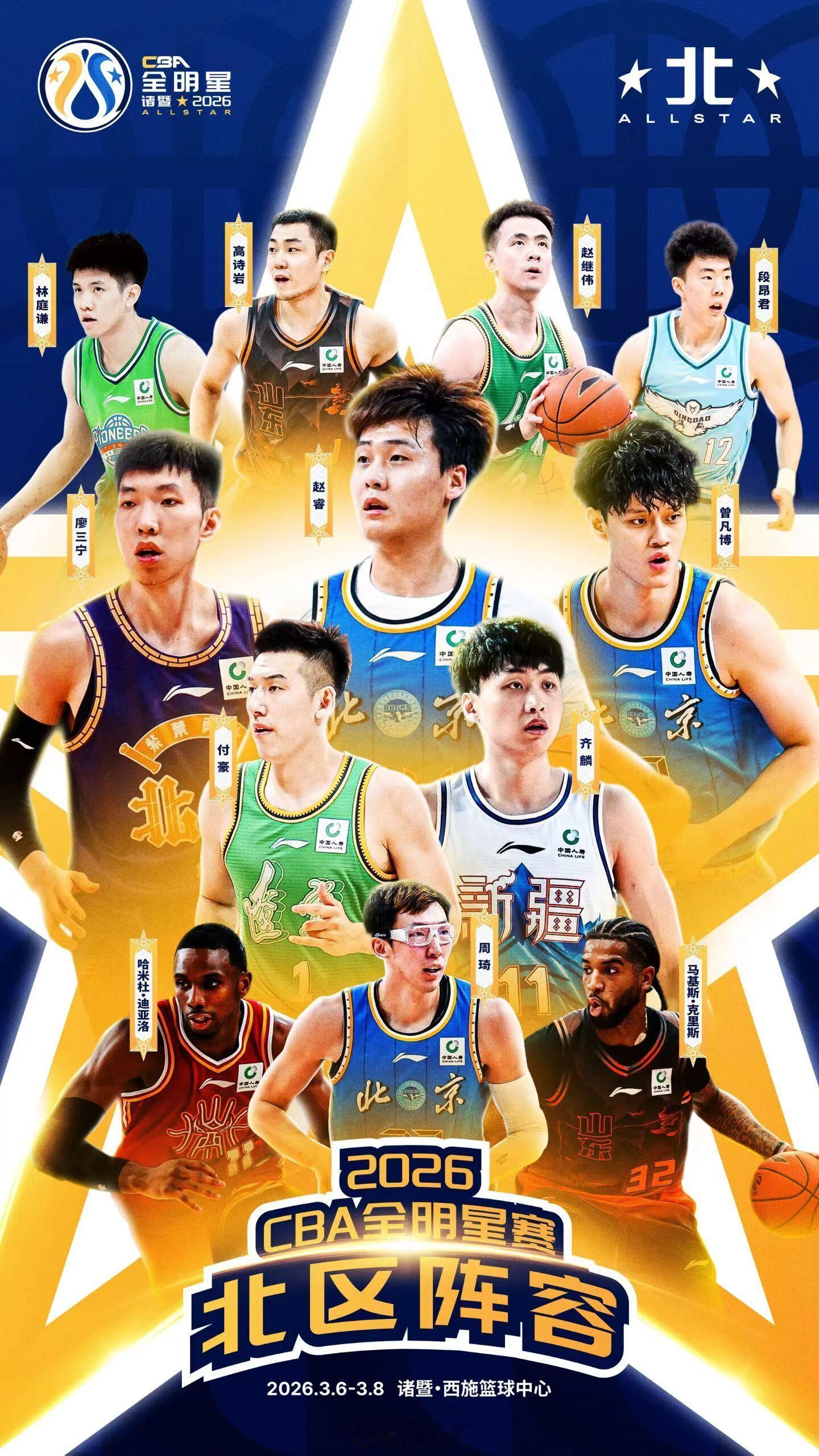 北区明星队阵容:首发球员: 曾凡博(北京),齐麟(新疆),付豪(辽宁),赵睿(北京),廖三宁(北控)替补球员:周琦(北京),段昂君(青岛),高诗岩、克里斯(山东),迪亚洛(山西),林庭谦(天津),赵继伟(辽宁)。