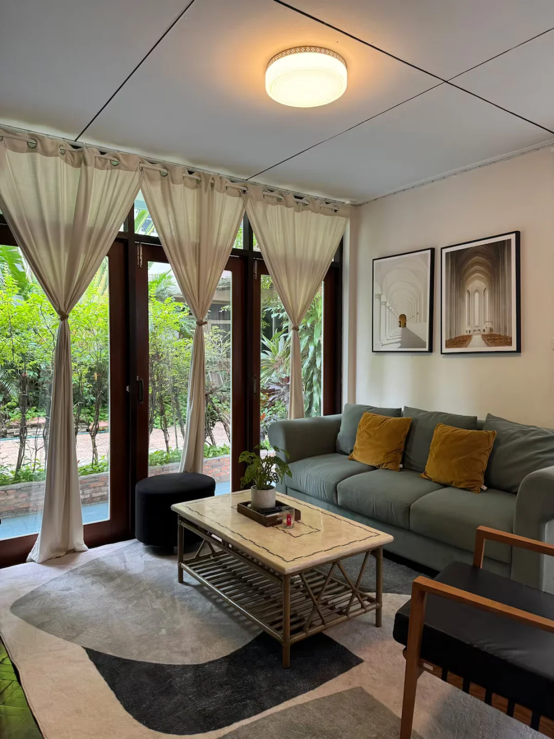 -传统泰屋,复古优雅:整个民宿是那种上世纪70年代的风格,200多平米的面积,空间超大。被绿色植物包围,不论是从窗户还是露台看出去都是郁郁葱葱的绿色