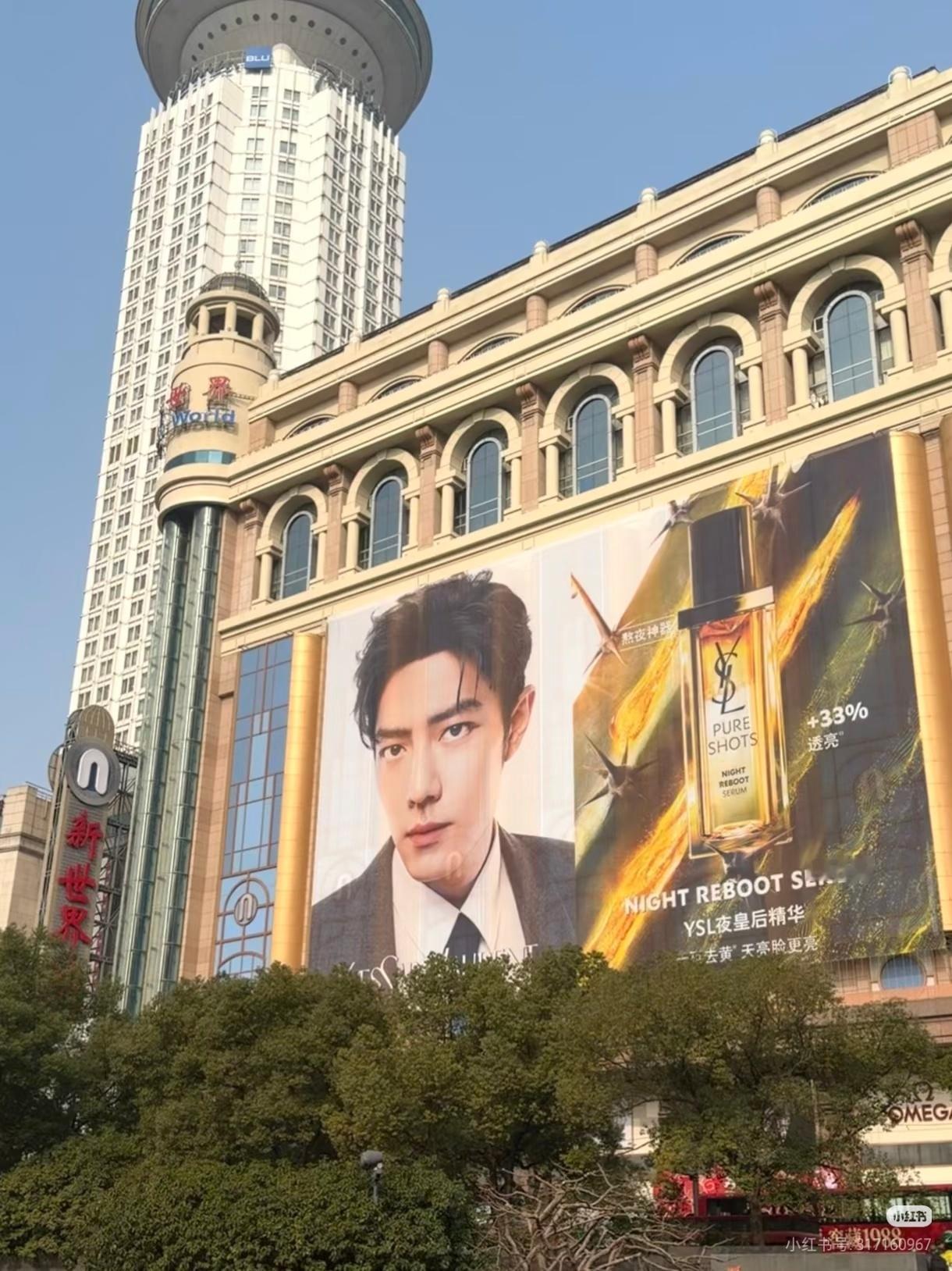 肖战的巨幅广告来了!西安skp ,上海新世界城1F YSL,深圳卓悦中心,最强打