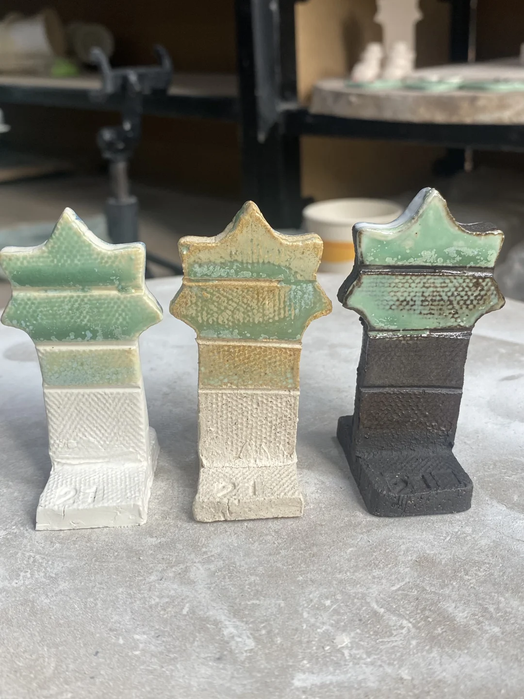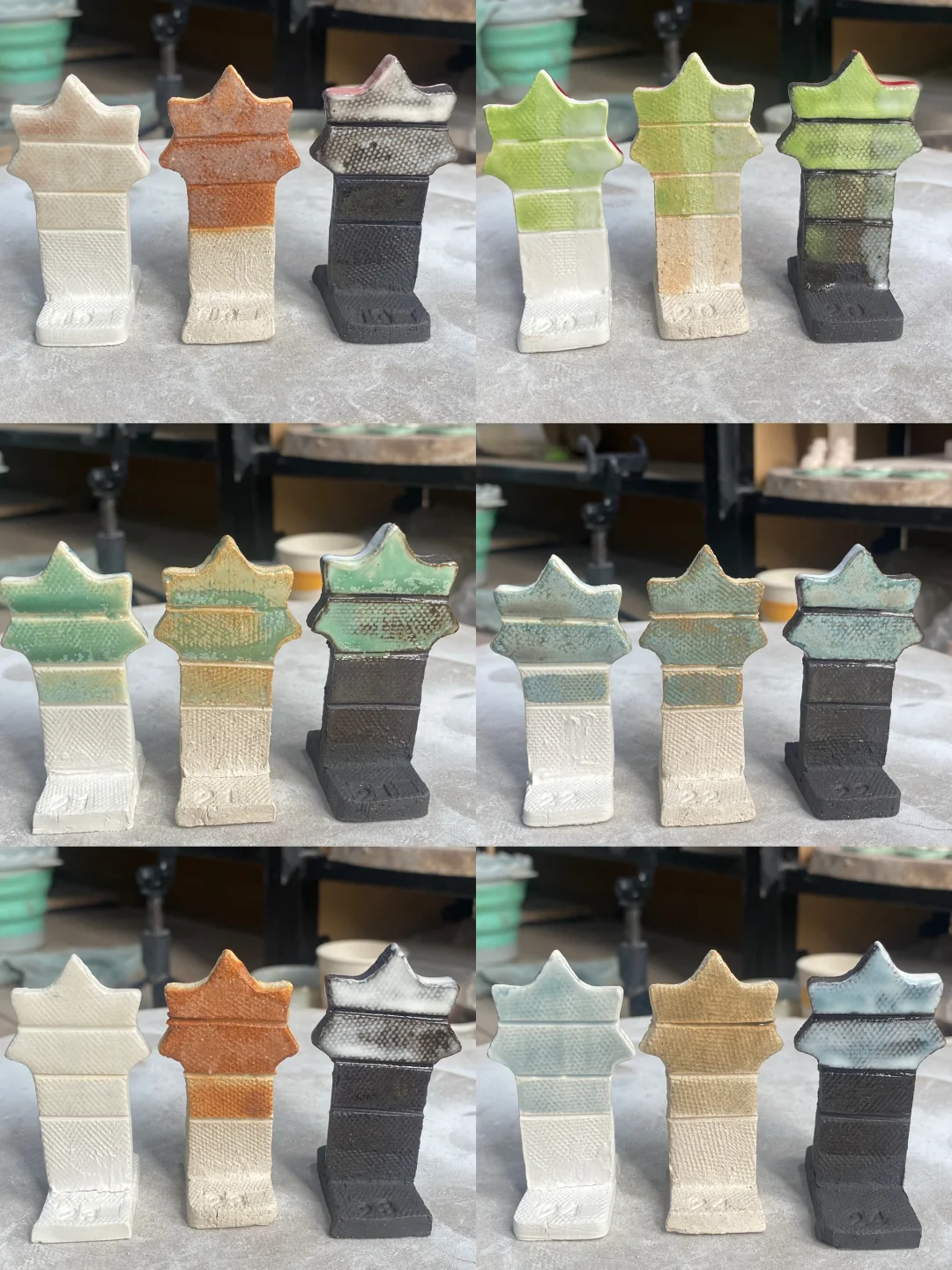 高白/匣钵/黑陶的同一釉料🎨试片对比2