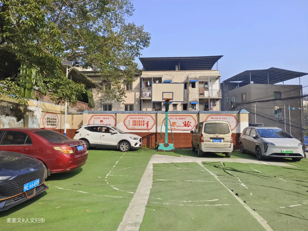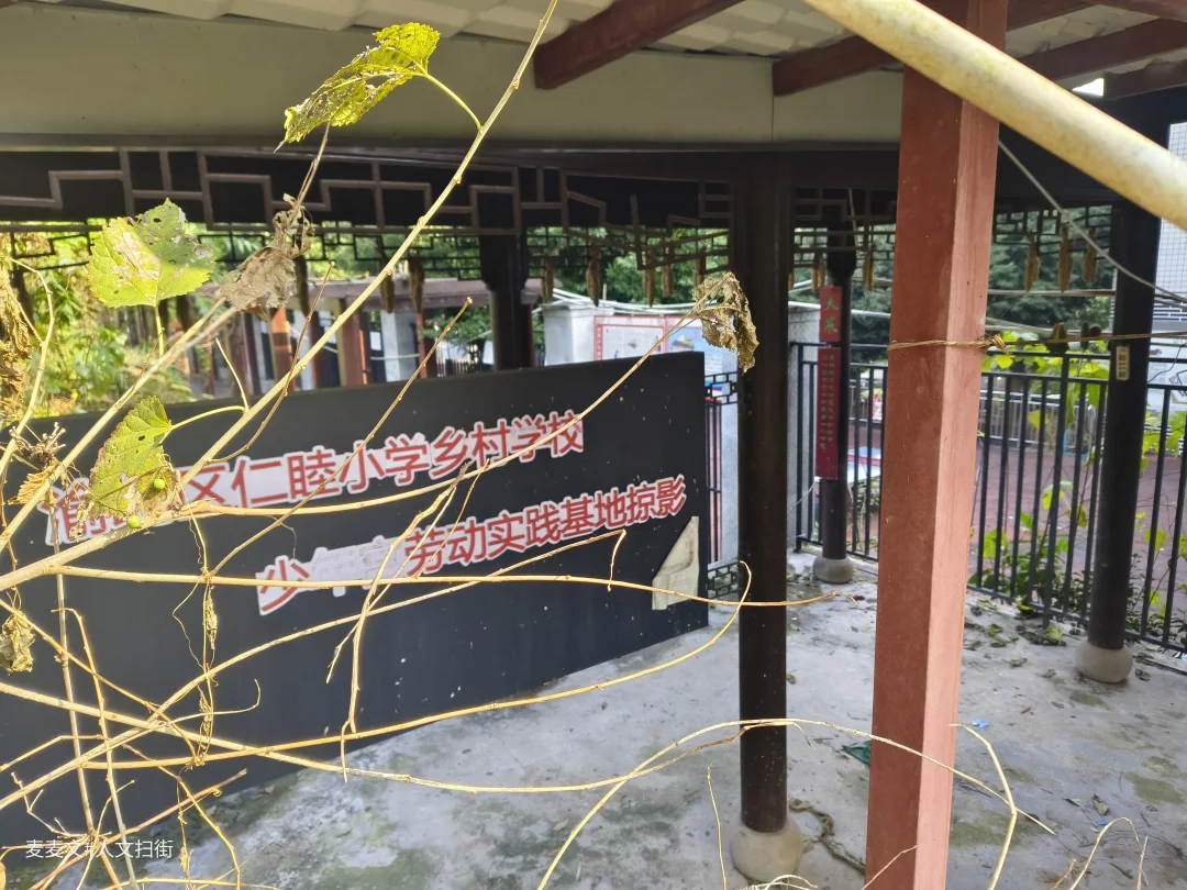 走在重庆市两江新区(渝北区)双凤桥街道仁睦街,仁睦初级中学校的铁门紧闭,校内静悄悄的。隔壁仁睦完全小学校的操场被改作停车场,乒乓球台蒙着灰,劳动教育宣传栏边杂草丛生,木质长廊落满枯叶。斑驳的墙面上“爱的乐园”字样还在,却没了孩童的嬉闹声。这两所承载着仁睦滩几代人记忆的学校,如今只剩废弃的学校建筑设施,在蓝天下诉说着时光的变迁。