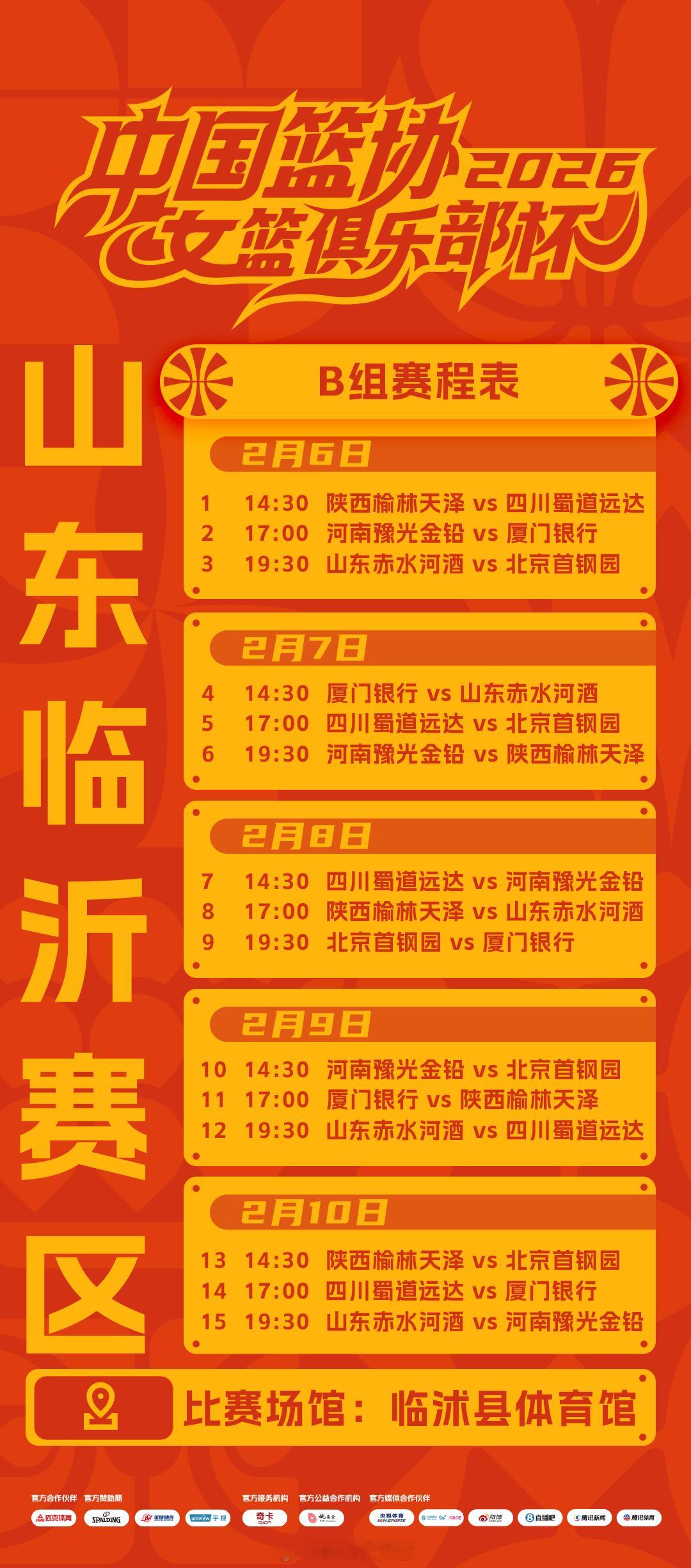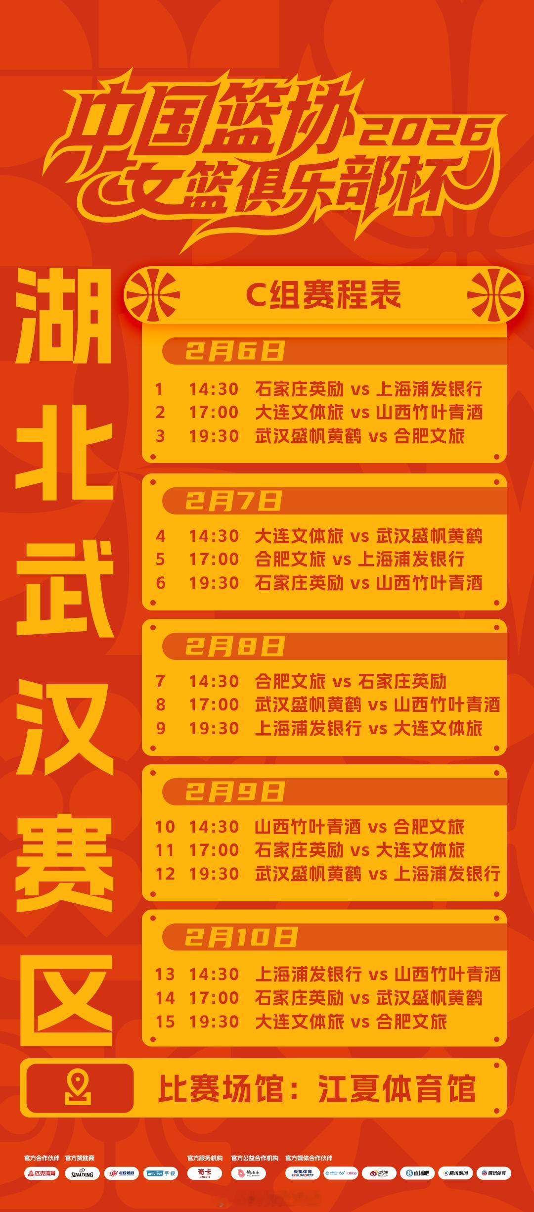 2026年中国篮协女篮俱乐部杯即将于2月6日开赛,赛程如下👇🏻
