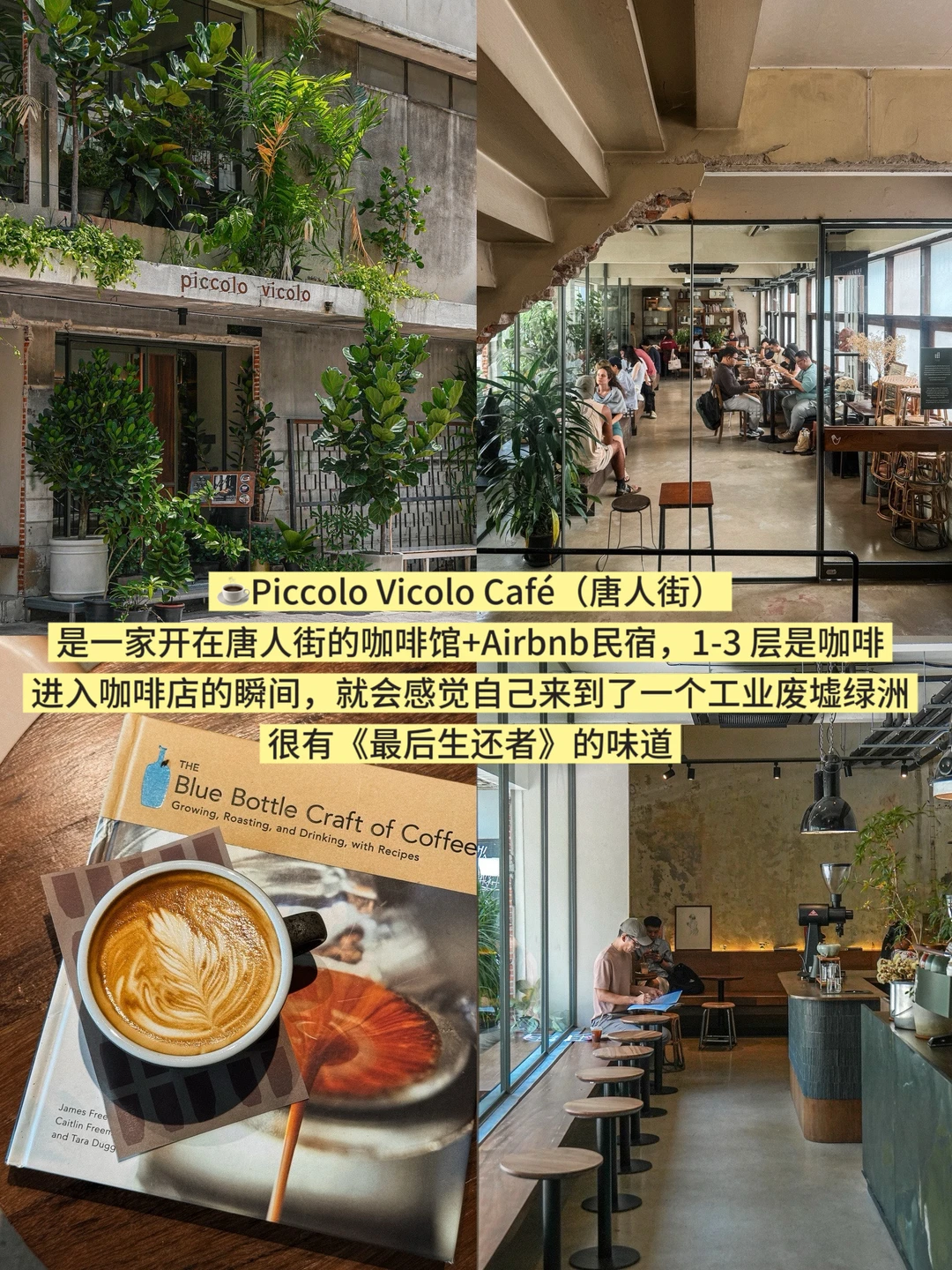 ☕️Piccolo VicoloCafé(唐人街):是一家开在唐人街的咖啡馆+Airbnb民宿,1-3层是咖啡。进入咖啡店的瞬间,就会感觉自己来到了一个工业废墟绿洲,很有《最后生还者》的味道