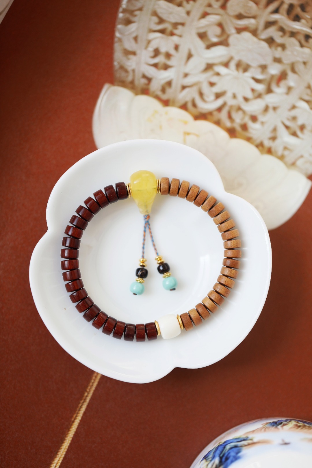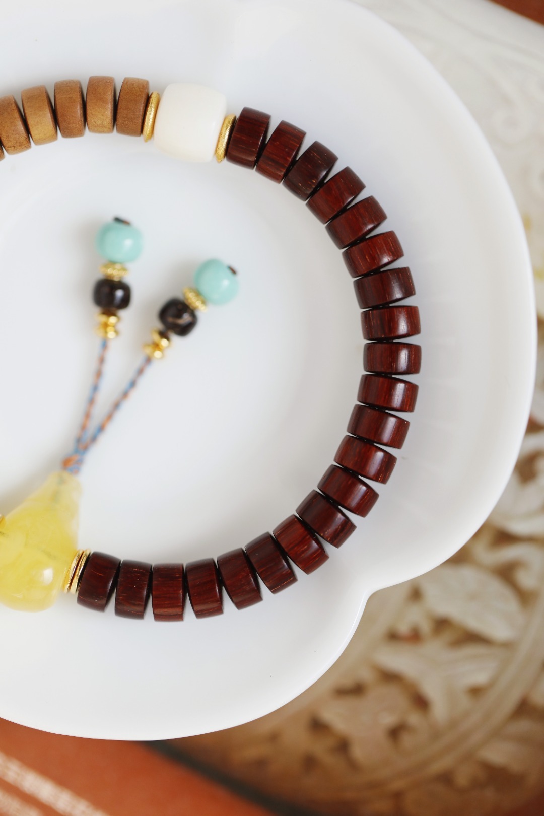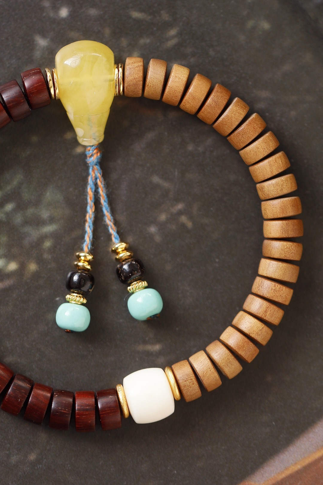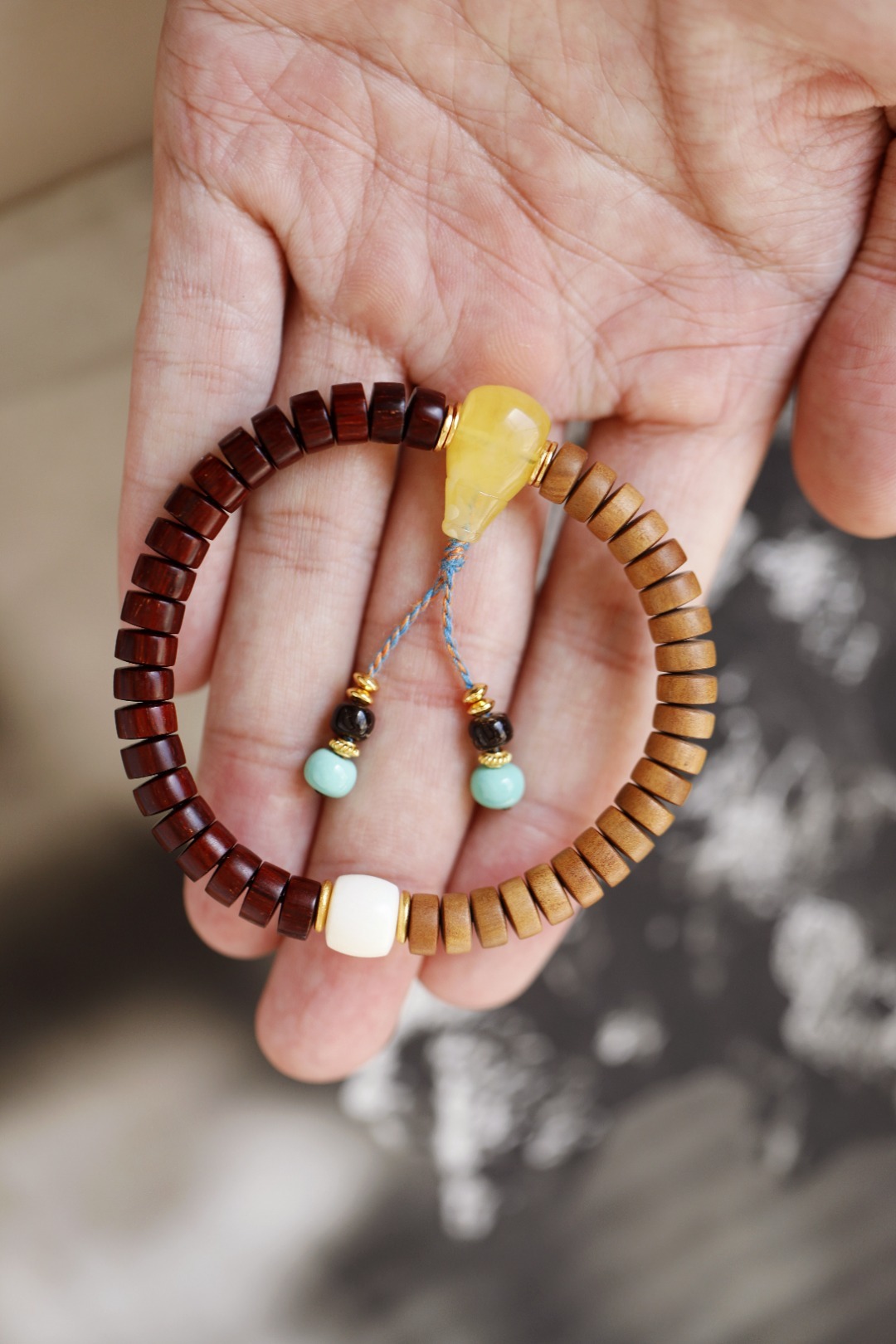 配件:鹿角、松石、蜜蜡、椰蒂、925银镀金 紫檀·老山檀香 原创【畅舒】4x7mm