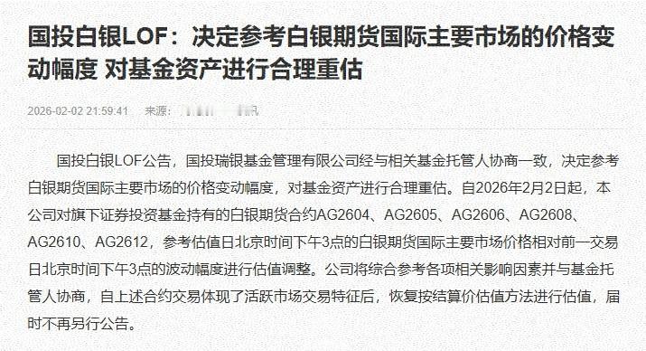 在此背景下,国投白银LOF公告称,将参考白银期货国际主要市场的价格变动幅度,对基金资产进行合理重估。当前,国投白银LOF的高溢价现象,还是受市场短期投机情绪影响,在黄金持续高位上涨情况下,投资白银成为备选方案,但相较于黄金,白银市场的资金极易出现恐慌性撤离,可能导致散户面临巨大损失。金银v型反转