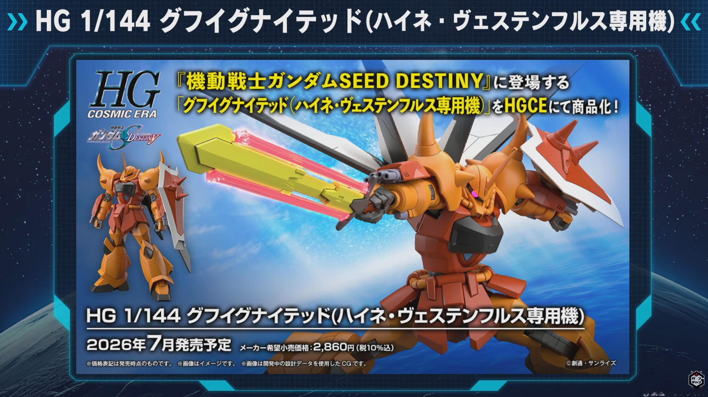 《机动战士高达SEED DESTINY》烈焰老虎(海涅·威斯特里夫机)HGCE化决定:2026年7月发售、2600日元高达模型高达模型