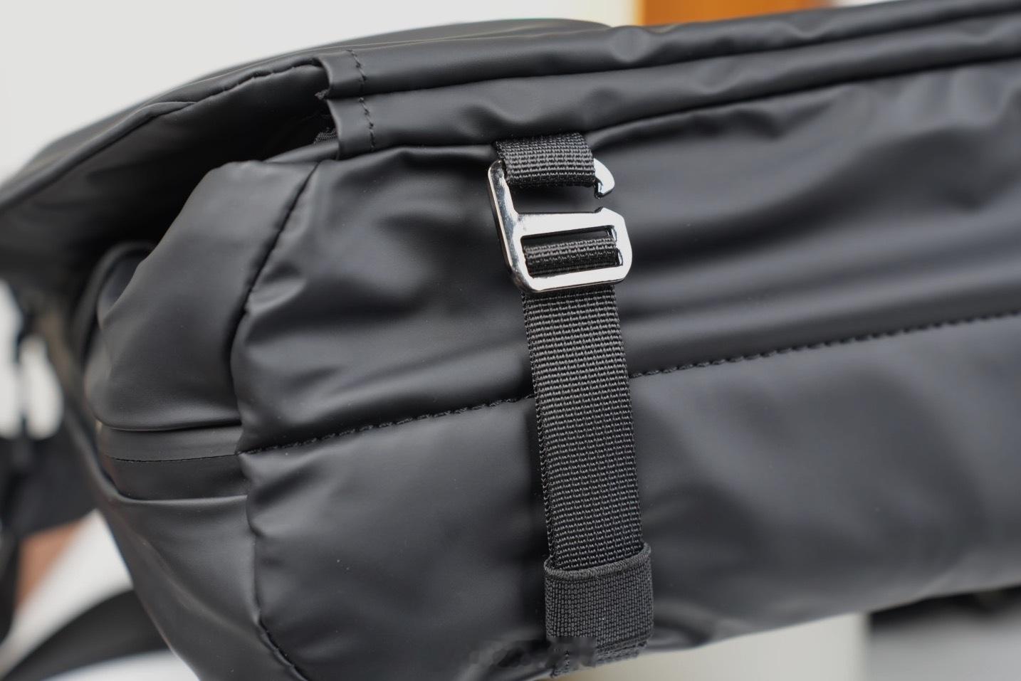 虽然看起来整体的包型并不是很大,但其实内部空间是非常充裕的。既保证了观感的恰到好处又保证了整体容量上的实用性这里有个巧思就是底部隐藏的调节绳设计,也就是它可以直接增加整体包型的宽度,容量也可从7L扩展至约13L 也就是说你可以直接根据你的需求去做调整