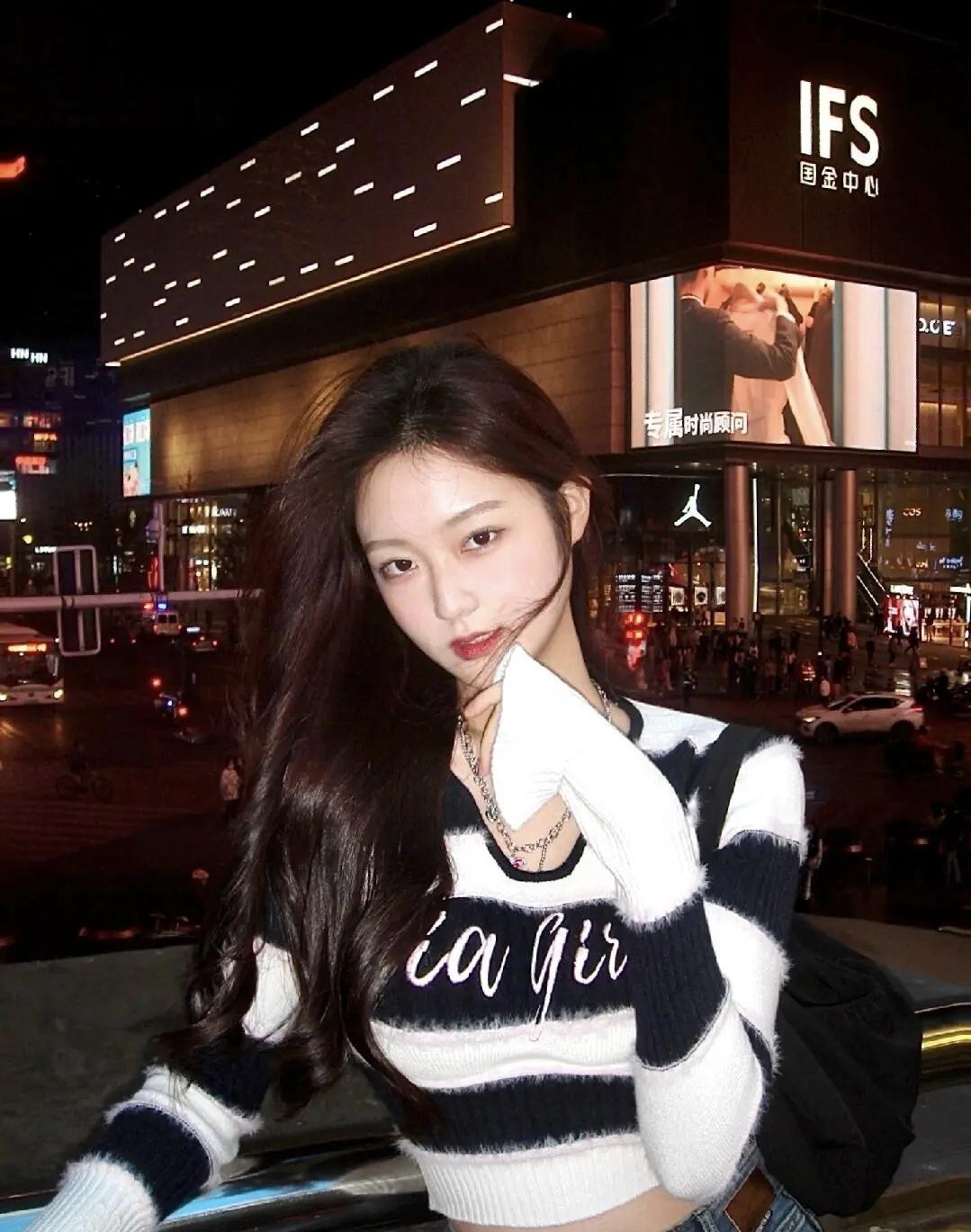 夜晚街拍,少女心爆棚的黑白条纹毛衣,少女感十足!