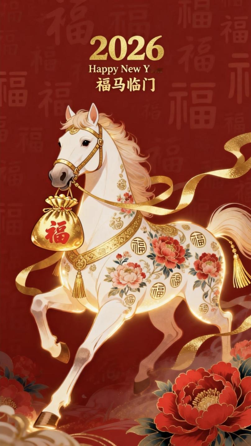 “福马临门贺吉祥,家沐春风福寿长…” 传统文化 绘画