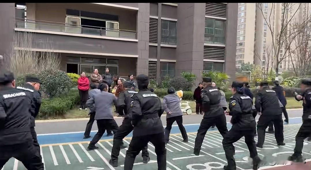 小区物业给保安和保洁军训,让他们打军体拳,业主们看得津津有味! 网友神评:防身的,故意打给业主看的,看你们以后还敢不交物业费! 上联:拳打小区业主,下联:脚踢外卖小哥,横批:谁也不惯! 还别说,这军体拳一展示,感觉大爷大妈精气神都不一样了。物业搞这样的活动,不仅能提升他们的形象,还能拉近和业主的距离。业主们看得开心,说不定对物业的满意度也会蹭蹭往上涨呢!
