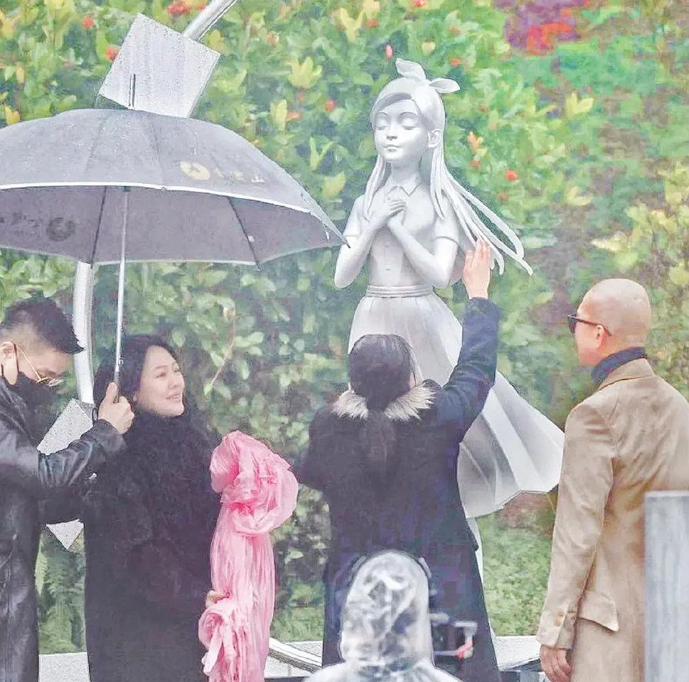 台北金宝山的雨,下得真是应景。 2月2日下午,大S离世周年,丈夫具俊晔为她设计的纪念雕像在雨中揭开。粉红色幕布落下,白色大理石雕像“如少女迎风而立”,S妈瞬间泪崩,扑上去哭喊:“宝贝,你重生了!”小S也红着眼眶轻抚雕像。 蔡康永、言承旭、周渝民、吴佩慈……当年“七仙女”和“F4”成员悄然到场,这哪里是悼念,分明是一代人的青春在雨中集体谢幕。 具俊晔给雕像取名《熙媛的永恒轨道》。心思全藏在细节里——那蜿蜒向上的9阶S形台阶,既是大S的艺名,韩语“九”又与他姓氏同音;5块方石守护在旁,象征家人;裙摆镶嵌99颗珍珠,是她生前最爱;雕像朝向南方的208度,正对台北101,也暗含两人定情日2月8日。 这一年,具俊晔几乎停了所有工作,每周数次去墓地,带着黑咖啡和她爱的食物。他放弃了数亿台币遗产,全数转给大S与汪小菲的子女。有人赞他深情,也有人质疑“作秀”。艺术总监代他回应争议:“这不是为了重现样貌,而是为她留下的精神,找一个可以停留的地方。” 雨一直下,循环播放着《姐妹情深》。当幕布落下,雕像静静立于山间,一个时代的热闹与争议,仿佛也随之沉淀。 具俊晔在信里写:“总觉得你还在身边。” 或许,真正的告别从来不是遗忘,而是为汹涌的思念,找到一个像这尊雕像一样,安静、恒久、美丽的安放之处。