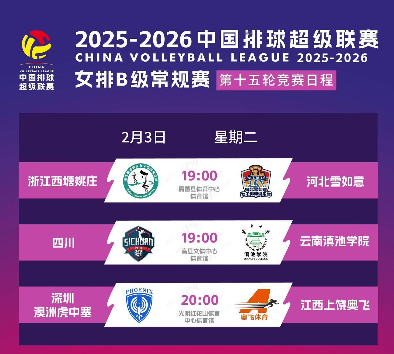 今天是2025-2026中国女排超级联赛常规赛最后一轮,也是中国排球超级联赛常规赛最后一个比赛日。常规赛结束后,除了打升降赛的,各队开始放假,打升降赛的队,打完也开始放假,参加青年挑战赛的青年和学生军,本周完成第一阶段排名赛后也开始放假。季后赛春节后开始,女排25号、男排26号开打。 中国女排超联赛