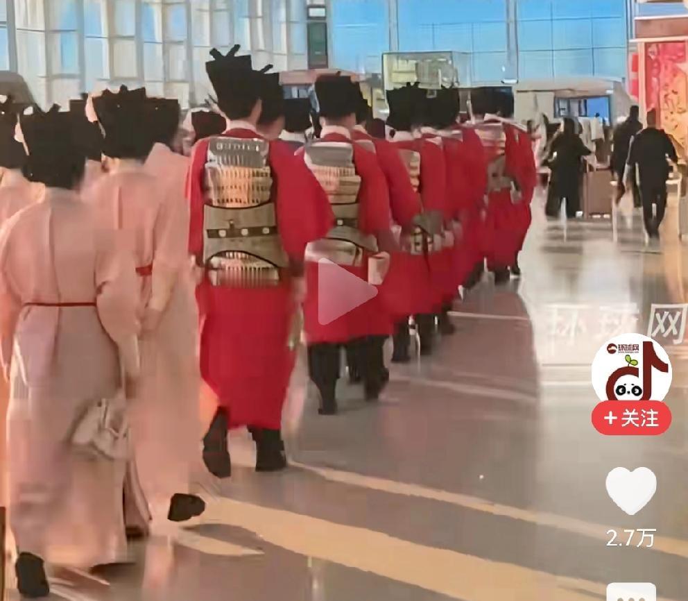 广州白云机场汉服秀,“又双叒来了” 2月2日,白云机场在春运期间推出“宋服卫士形