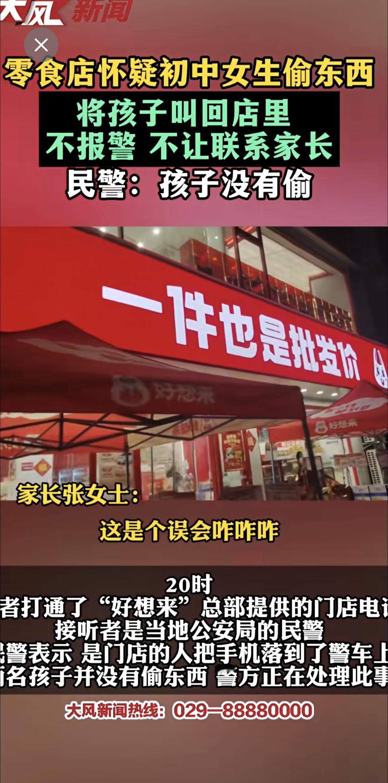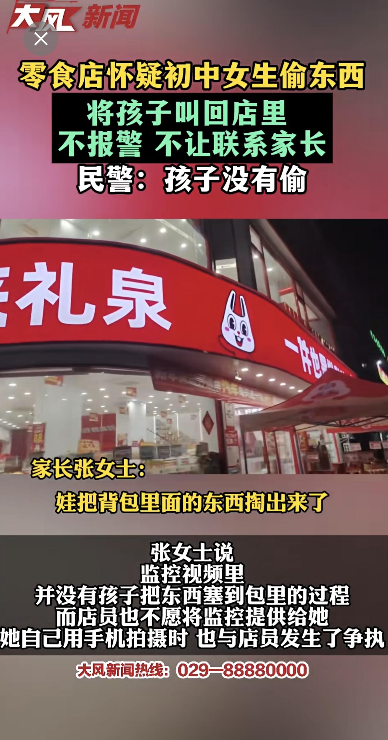 零食店怀疑初中女孩偷东西,将孩子叫回店里,不报警、不让联系家长 民警:孩子并没有